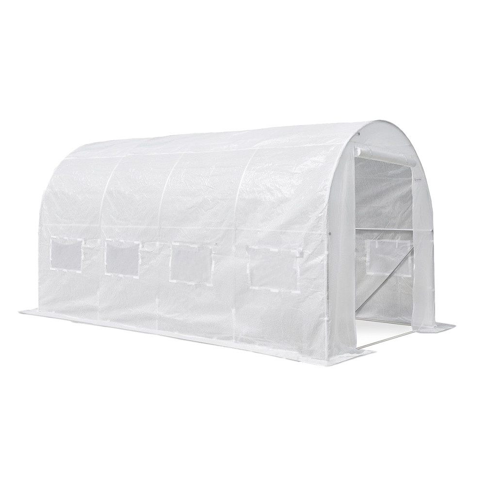 Cortul modern din folie este echipat cu o ușă pliabilă practică, care facilitează accesul. Cele 8 orificii de ventilație laterale ale cortului sunt prevăzute cu plasă pentru a preveni pătrunderea insectelor, asigurând în același timp o circulație adecvată a aerului. Ferestrele ajută la reglarea umidității, crescând astfel randamentul culturilor. Cortul din folie poate fi utilizat în orice condiții meteorologice, fiind o soluție ideală pentru cultivarea plantelor în grădină sau pe proprietate.