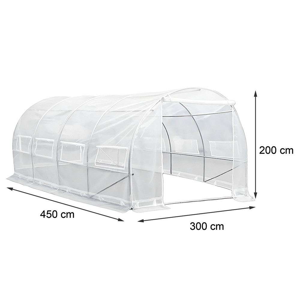Cortul modern din folie este echipat cu o ușă pliabilă practică, care facilitează accesul. Cele 8 orificii de ventilație laterale ale cortului sunt prevăzute cu plasă pentru a împiedica pătrunderea insectelor, asigurând în același timp o circulație adecvată a aerului. Ferestrele ajută la reglarea umidității, crescând astfel randamentul culturilor. Cortul din folie poate fi utilizat în orice condiții meteorologice, fiind o soluție ideală pentru cultivarea plantelor în grădină sau pe proprietate.