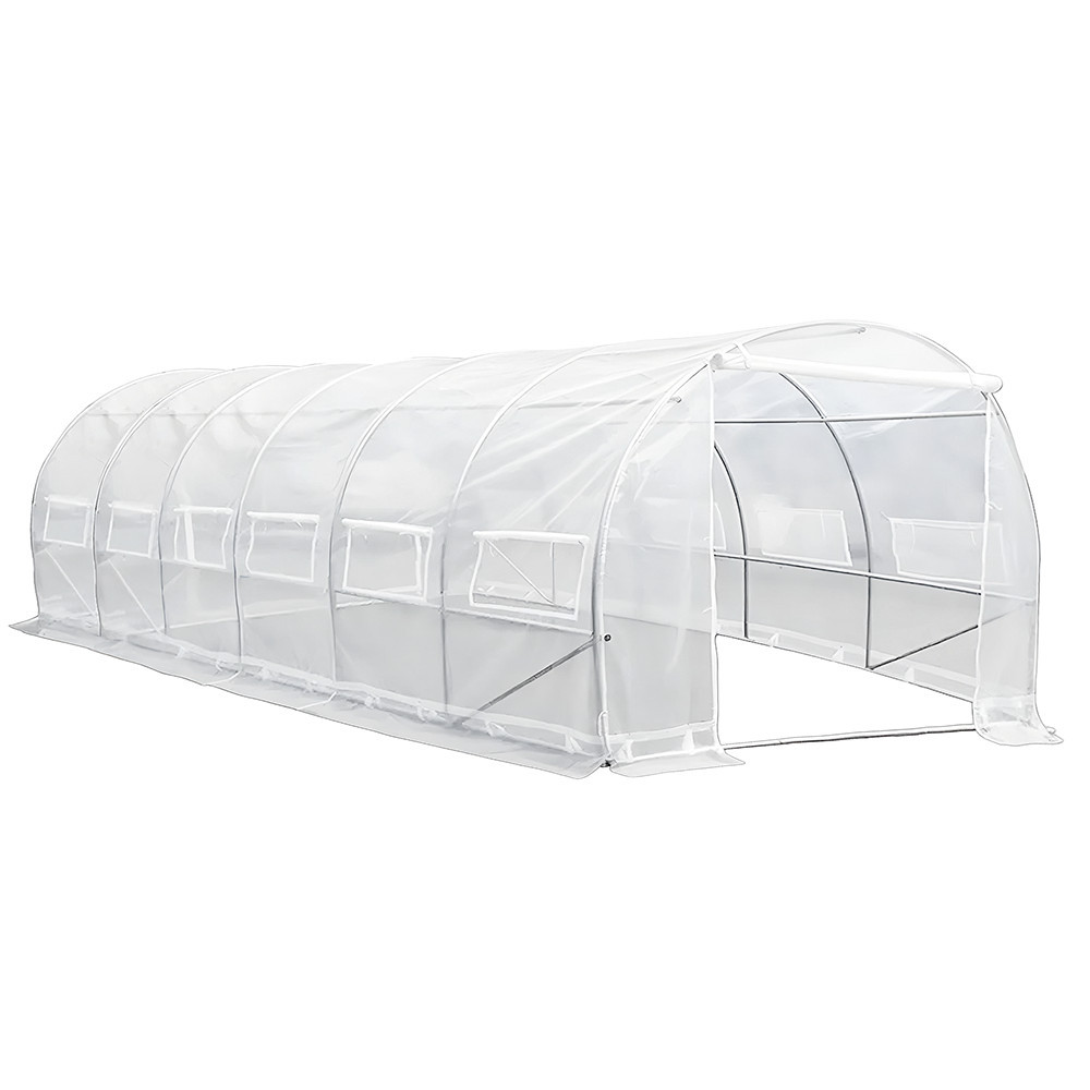 Cortul modern din folie este echipat cu o ușă pliabilă practică, care facilitează accesul. Cele 12 orificii de ventilație laterale ale cortului sunt prevăzute cu plasă pentru a împiedica pătrunderea insectelor, asigurând în același timp o circulație adecvată a aerului. Ferestrele ajută la reglarea umidității, crescând astfel randamentul culturilor. Cortul din folie poate fi utilizat în orice condiții meteorologice, fiind o soluție ideală pentru cultivarea plantelor în grădină sau pe proprietate.