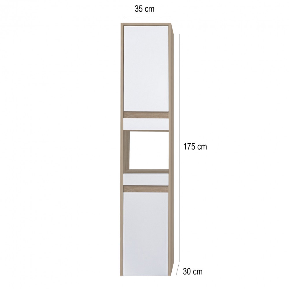 Leziter Dulap baie Luna, lateral, cu design de perete/podea, stejar Sonoma-alb, universal