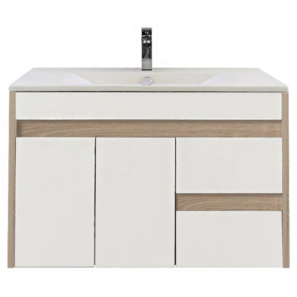 Mobilierul de baie are sertare spațioase unde se pot depozita convenabil articolele de toaletă. Datorită designului său compact , este potrivit și pentru mobilarea băilor mai mici, de exemplu în apartamentele cu panouri. Produsul este fabricat din plăci de mobilier de înaltă calitate și este prevăzut cu margini asortate în culori . Mobilierul de baie este disponibil în versiune suspendată .
