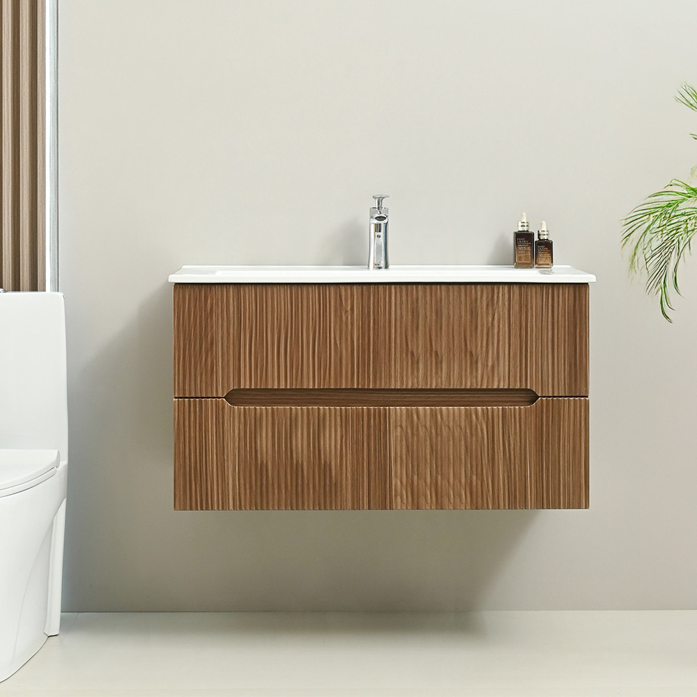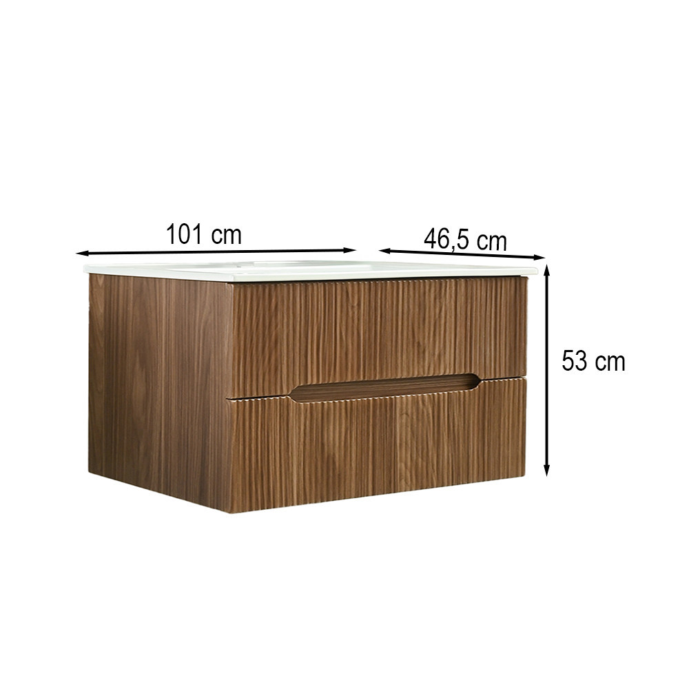 Unitate de baie Trent 100 cu chiuvetă ceramică – stil natural, depozitare practică
