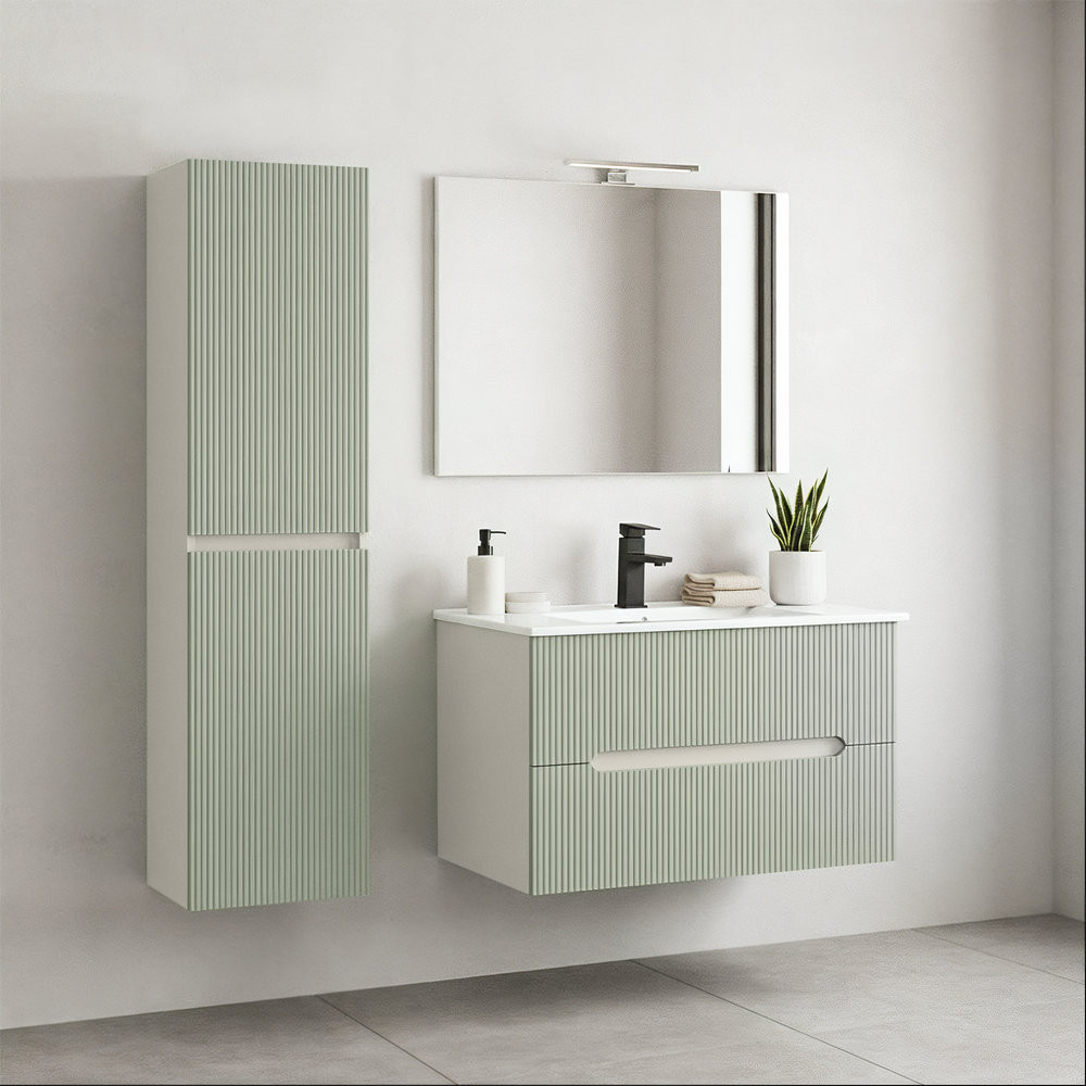 Dulapul lateral suspendat Leziter Trent poate fi unul dintre cele mai practice elemente pentru băile mici și mijlocii, deoarece nu ocupă spațiu prețios datorită fixării sale pe perete, dar oferă totuși o capacitate de depozitare semnificativă. Corpul din laminat rezistent la umezeală și partea frontală lăcuită sunt foarte rezistente la mediile umede, astfel încât își păstrează aspectul estetic în timp. Rafturile interne facilitează accesul și organizarea cosmeticelor, articolelor de toaletă sau prosoapelor, în timp ce mânerul ascuns creează un aspect general modern și curat.