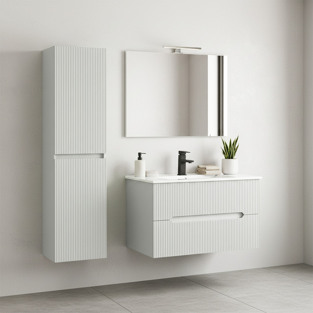 Dulapul lateral suspendat Leziter Trent poate fi unul dintre cele mai practice elemente pentru băile mici și mijlocii, deoarece nu ocupă spațiu prețios datorită montării sale pe perete, dar oferă totuși o capacitate de depozitare semnificativă. Corpul din laminat rezistent la umiditate și fața lăcuită sunt bine rezistente la mediile umede, astfel încât își va păstra aspectul estetic în timp.