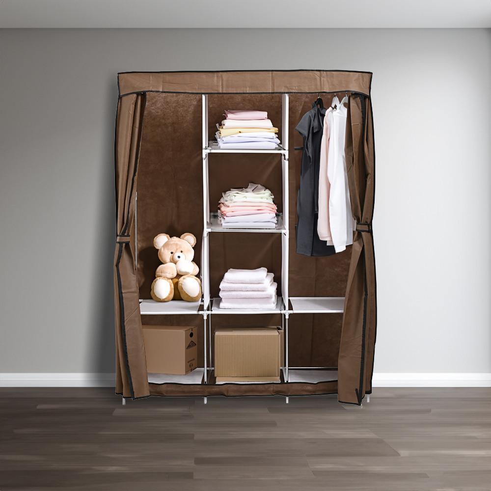 - Design mobil: Dulapul este ușor de mutat, fiind ideal pentru locurile în care nu doriți să cheltuiți mulți bani pe mobilă sau unde plănuiți să stați doar pentru o perioadă scurtă de timp. Poate fi folosit și în camera unui copil, deoarece husa protectoare colorată înseninează atmosfera.