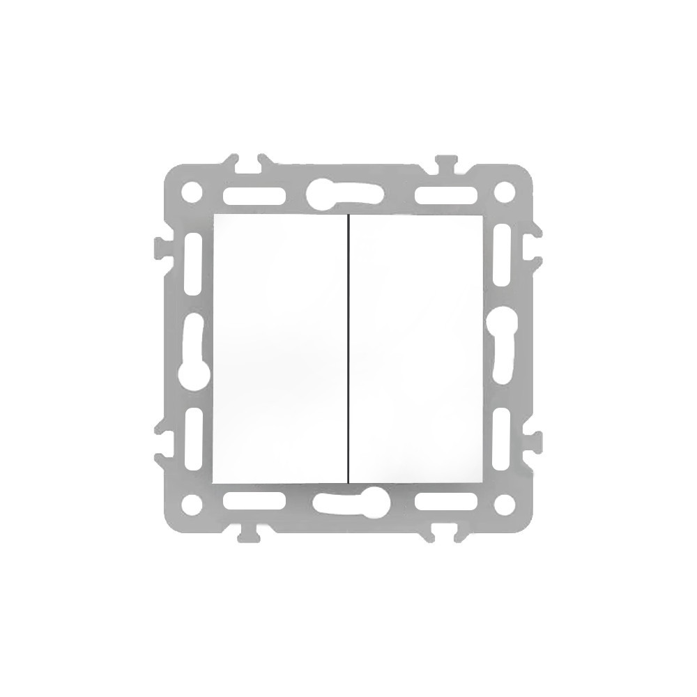 Întrerupătorul pentru candelabru Nova 105 este potrivit pentru controlul a două circuite de iluminat independente (de exemplu, un candelabru cu mai multe ramificații sau două surse de lumină într-o cameră) dintr-o singură locație. Designul său îl face o soluție ideală în cazurile în care utilizatorul dorește să implementeze un control simplu, dar eficient al iluminatului. Întrerupătorul are două butoane separate pentru întreruperea circuitelor unipolare. Este compatibil cu dozele standard de instalare încastrate și familiile de instalații modulare. Nu conține un insert de iluminat. Clasa de protecție IP20 permite utilizarea numai în medii interioare, fără praf și uscate, cum ar fi camere de zi, dormitoare, holuri. Nu este recomandat pentru utilizare în exterior sau cu umiditate ridicată. Instalarea trebuie efectuată întotdeauna de către un electrician calificat.
