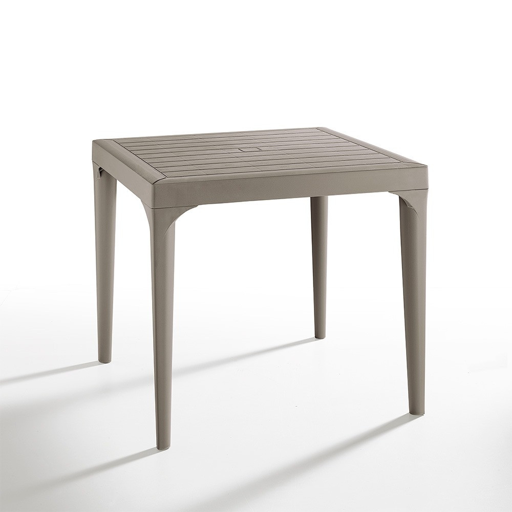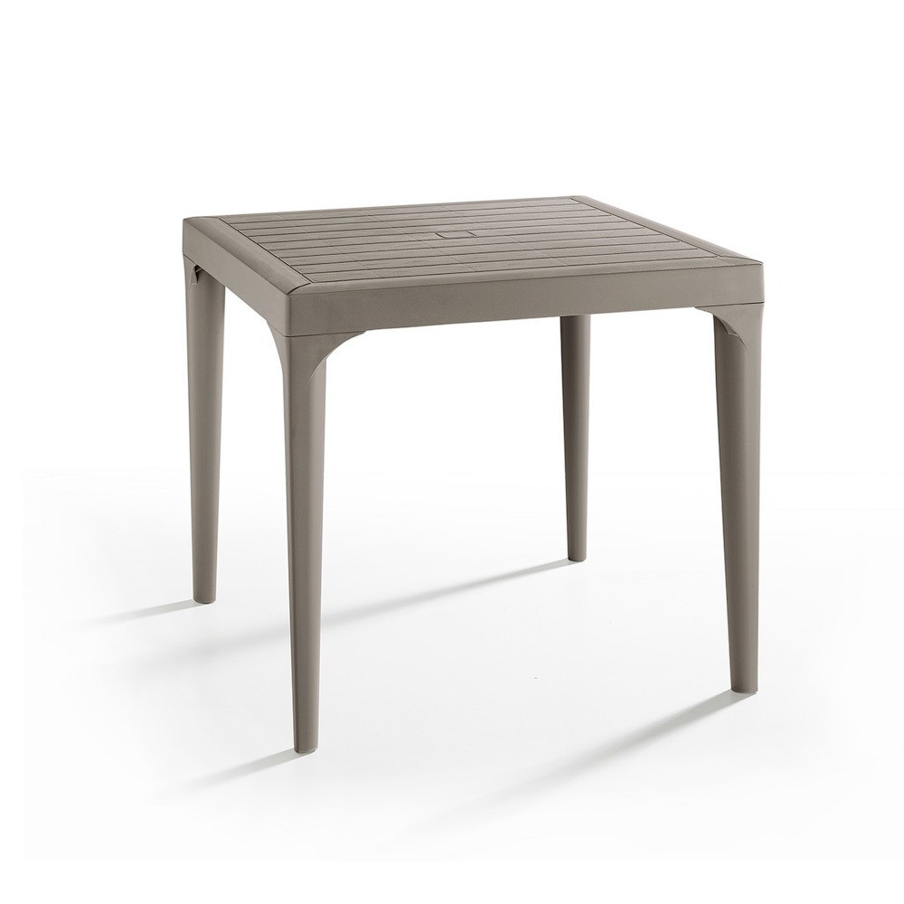Această masă dreptunghiulară din plastic, de culoare taupe , confortabilă și elegantă, cu dimensiunile de 80x80x74 cm, este fabricată în Italia. Ușor de asamblat, nu necesită cunoștințe profesionale. Este durabil și poate rezista bine la condițiile meteorologice, așa că te poți baza pe el ani de zile. Este ușor de mutat, așa că îl poți pune oricând unde ai nevoie.