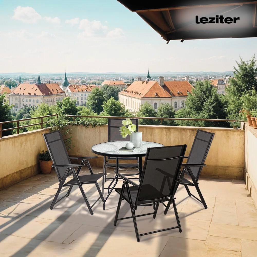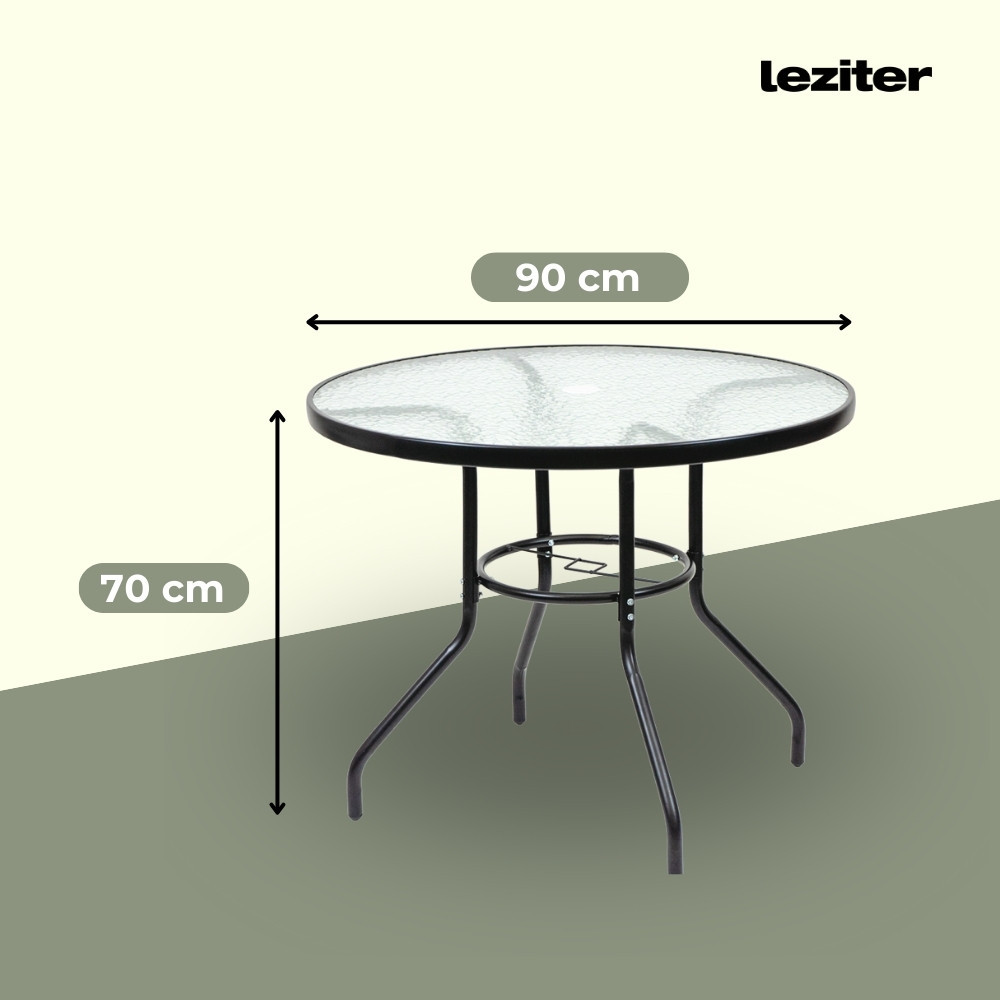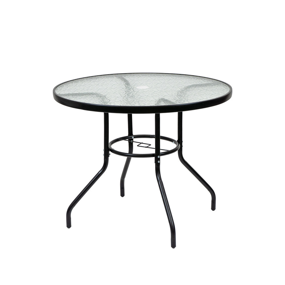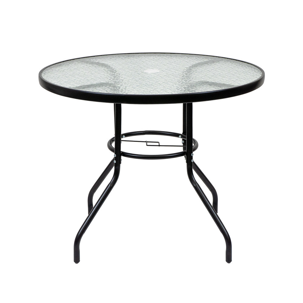 Leziter Masă de grădină Ordino cu cadru metalic și sticlă, neagră
