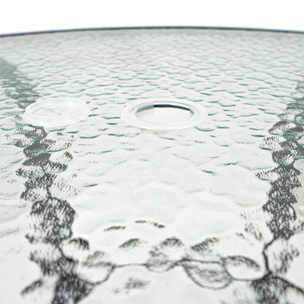 Ca element decorativ: Deoarece este o masă de sticlă estetică, poate servi și ca element decorativ pe o terasă sau într-o grădină.