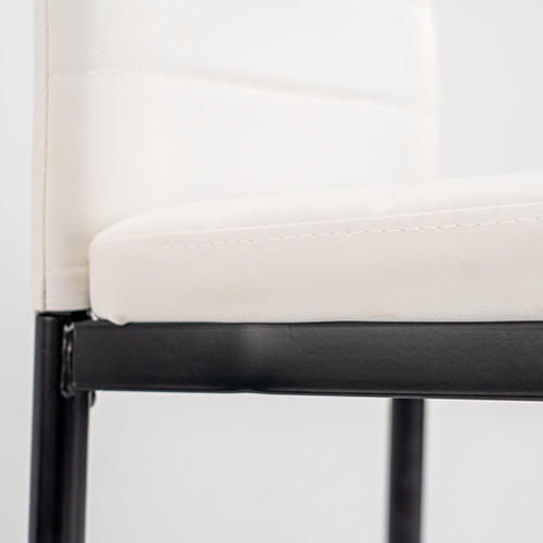 THE Scaune de sufragerie Tino NOVA Combinația perfectă între eleganță și funcționalitate. Șezutul și spătarul sunt acoperite cu piele textilă albă și sunt confortabile și ușor de curățat. picioare metalice vopsite în câmp electrostatic negru Acestea nu numai că oferă un suport stabil, ci oferă și un aspect sofisticat din punct de vedere estetic.