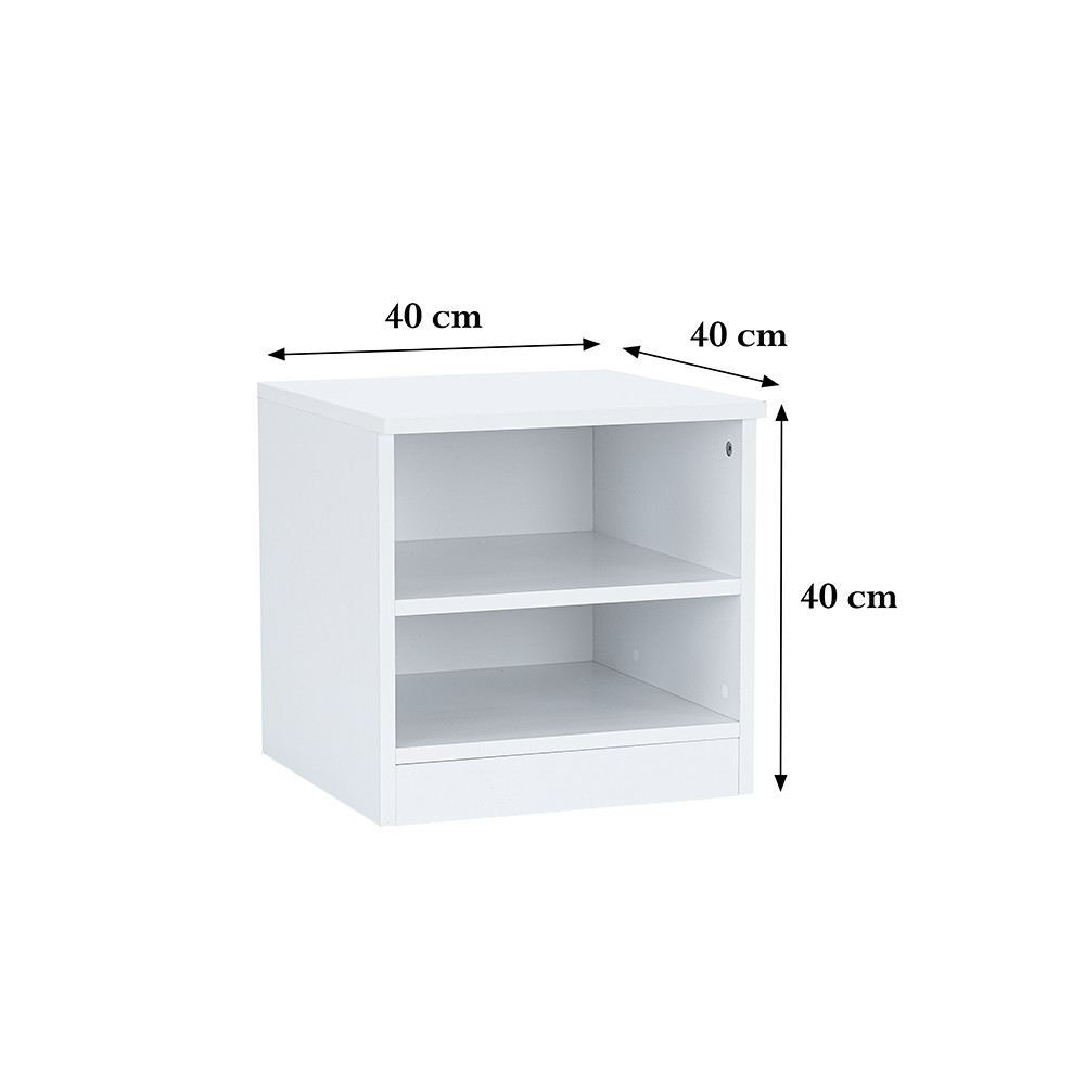 Dimensiunile noptierei de 40x40x40 cm se potrivesc perfect în dormitoarele mai mici, fără a ocupa prea mult spațiu. Noptiera este proiectată cu 2 rafturi unde puteți depozita obiecte importante, utilizate frecvent, cum ar fi cărți, ochelari sau telefonul.