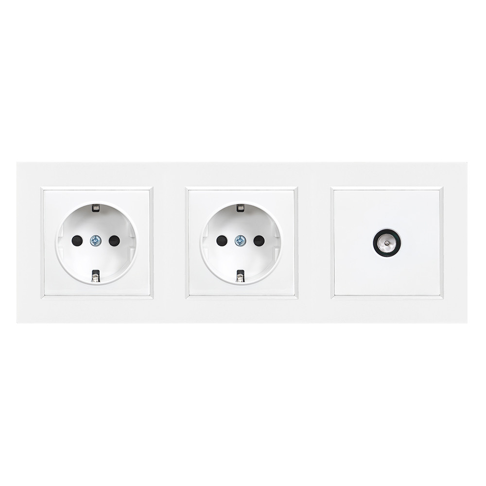 Priza dublă cu împământare Nova III cu priză TV este o soluție practică, cu economie de spațiu, care oferă un singur ansamblu pentru alimentarea în siguranță a două aparate electrice și o conexiune stabilă de semnal pentru un televizor sau o unitate interioară. Prizele cu împământare funcționează la un curent nominal de 16 A și 250 V CA și sunt potrivite pentru aparatele de uz casnic și de birou, precum și pentru consumatorii de putere mai mare, cum ar fi aparatele de bucătărie și echipamentele informatice. Priza TV RF coaxială asigură o transmisie de semnal fiabilă, fără interferențe, pentru o calitate excelentă a imaginii și a sunetului.