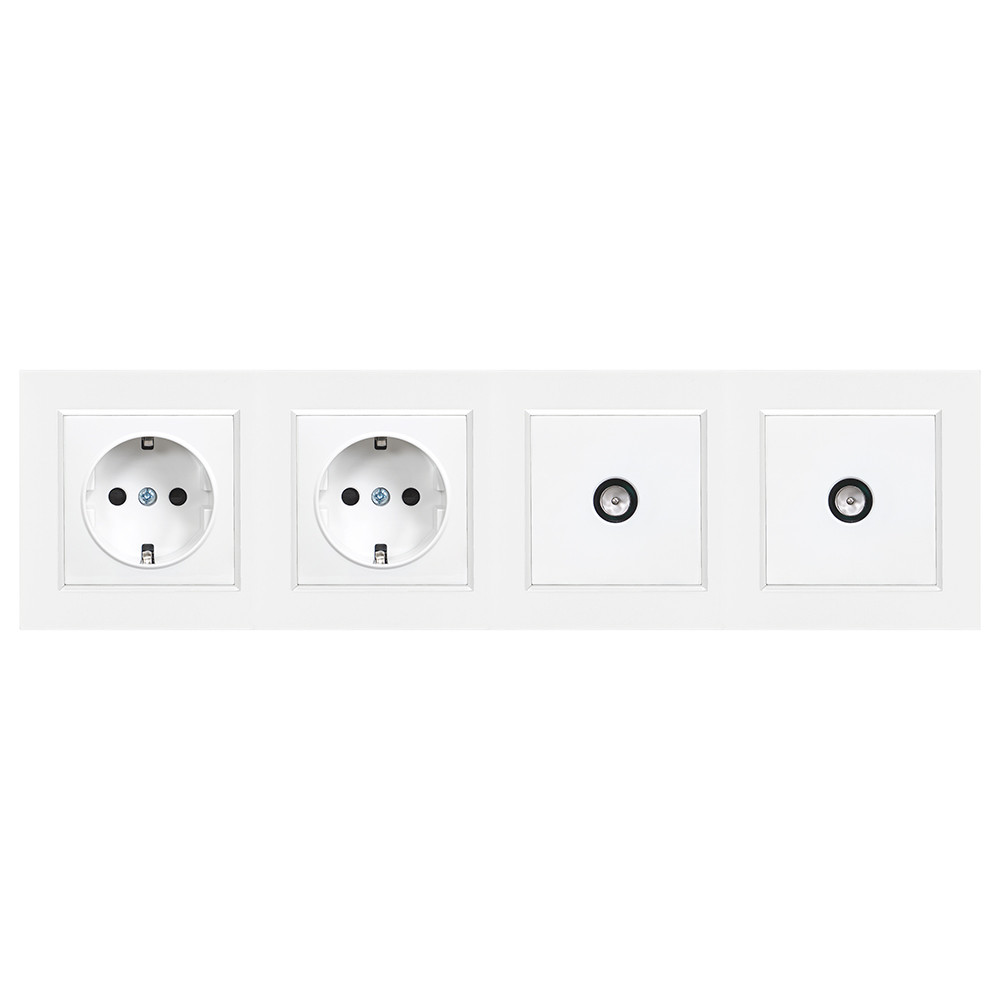 Designul încastrat oferă un aspect modern, curat, iar rama albă rotunjită se armonizează cu majoritatea interioarelor. Conectarea sigură este garantată de prizele cu împământare de tip F (Schuko), în timp ce prizele TV asigură o transmisie stabilă și neîntreruptă a semnalului.