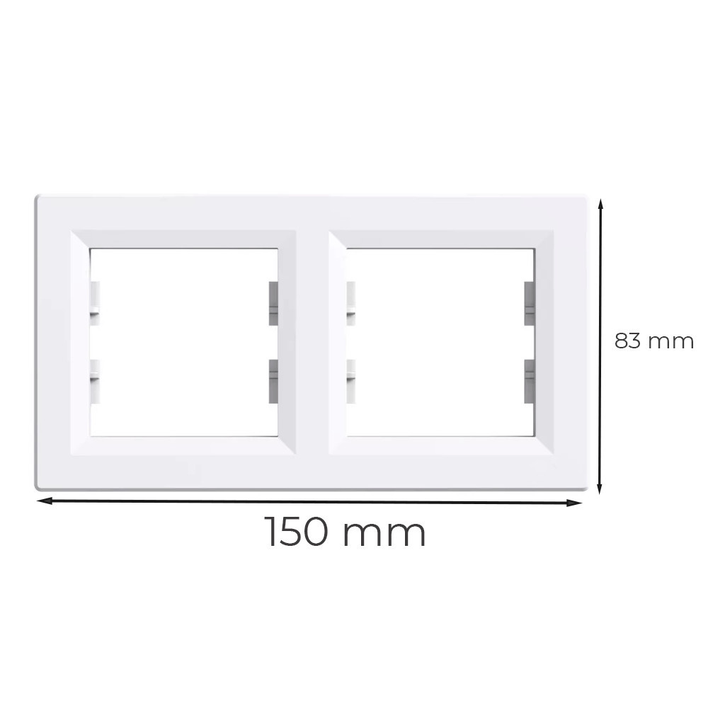 Rama dublă Nova, cu design orizontal, permite montarea estetică și sigură a două întrerupătoare sau prize amplasate una lângă alta. Este o soluție ideală dacă doriți să instalați uniform două puncte de iluminat, prize sau combinații mixte de corpuri de iluminat. Marginile sale rotunjite conferă un aspect discret și modern, iar culoarea albă se integrează ușor în aproape orice mediu de locuit sau birou. Produsul este compatibil cu modulele de întrerupătoare și prize Nova și, datorită designului său încastrat, este aproape la același nivel cu suprafața peretelui. Rama poate fi utilizată doar în încăperi interioare, uscate.