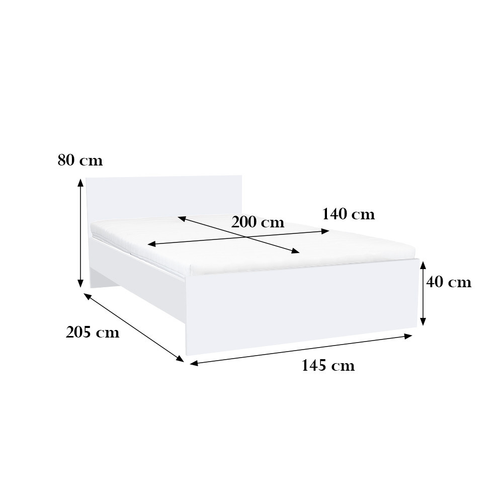 | Dimensiuni | Cadru de pat: 205 x 145 cm, Noptieră: 80 x 145 cm, Saltea (dimensiune recomandată): 200 x 140 cm. |