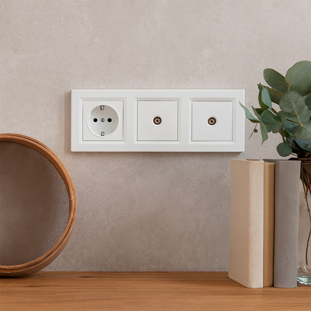 - Tip: priză împământată cu două conectori TV (coaxiali)