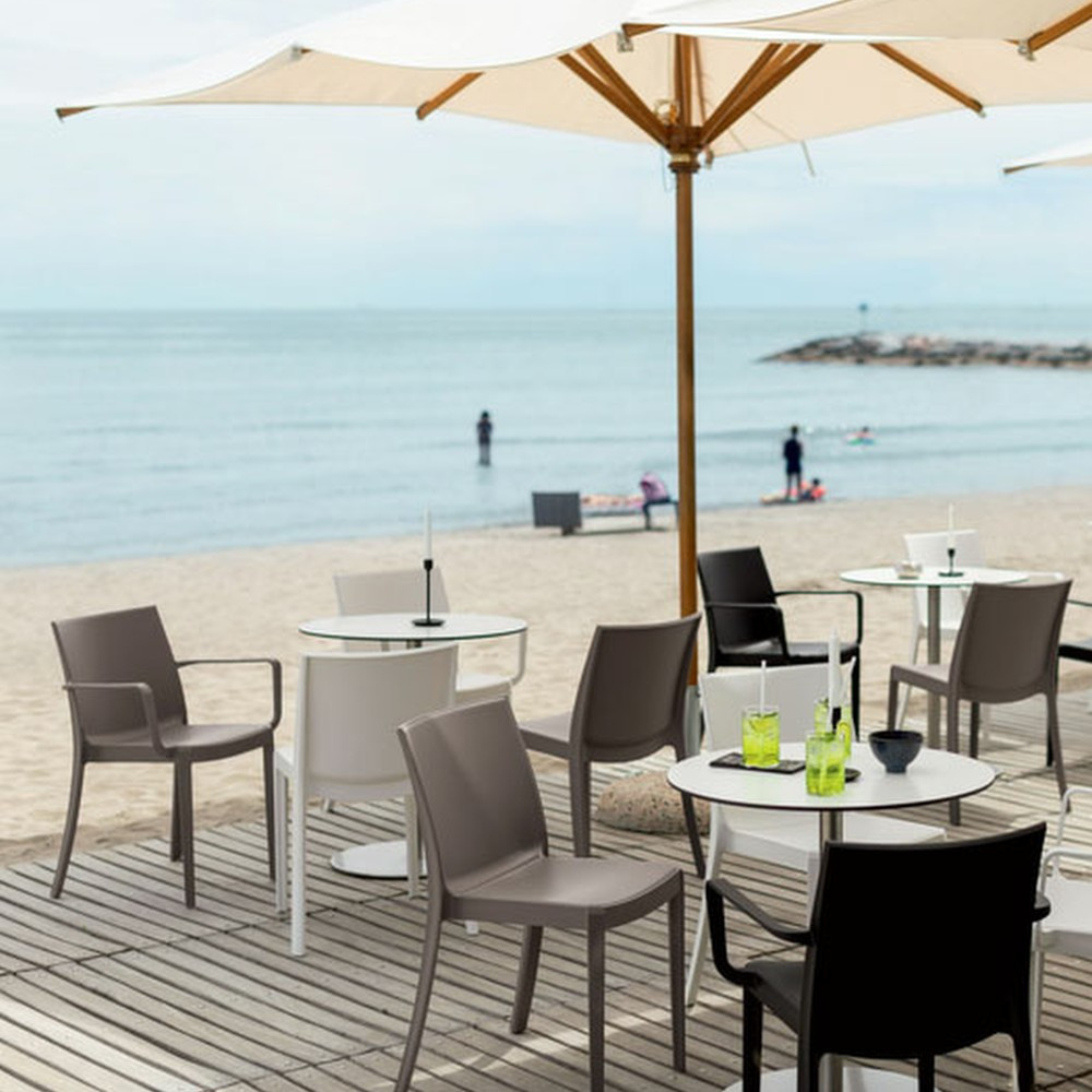 Acest scaun de grădină din plastic taupe, cu cotiere, este o alegere ideală pentru oricine iubește confortul și calitatea, în timp ce caută o soluție elegantă și practică pentru casa sau afacerea sa. Materialul plastic permite scaunului să fie durabil, astfel încât poate rezista cu ușurință condițiilor meteorologice exterioare, radiațiilor UV și umezelii, care pot deteriora mobilierul de grădină de-a lungul anilor.