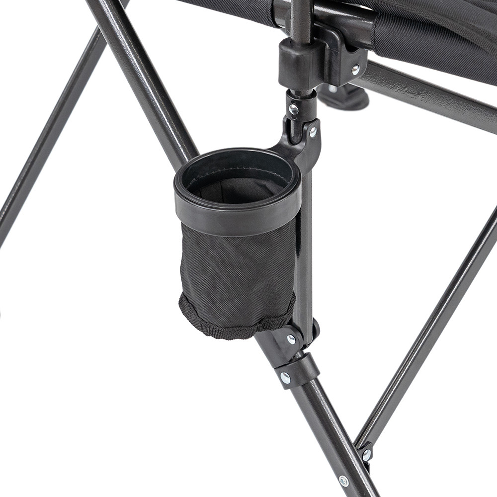 A bal oldalon található pohártartó praktikus megoldás italok elhelyezésére. A jobb karfán elhelyezett zsebes tároló kisebb eszközök, például telefon vagy horgászkiegészítők számára biztosít külön helyet.