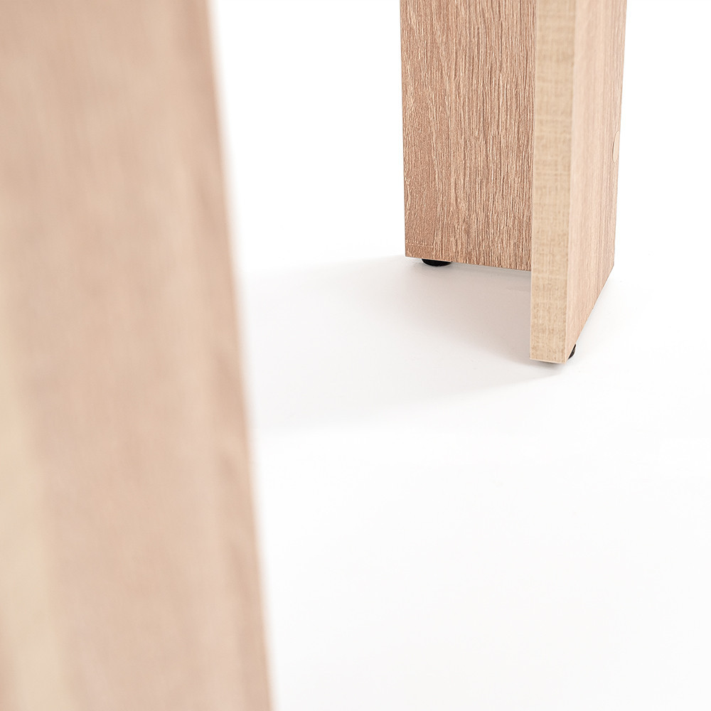 Masa de dining Leziter Yorki, cu culoarea sa stejar sonoma și designul curat, creează o atmosferă proaspătă și modernă în cameră. Dimensiunile sale compacte (86x60x76 cm) îl fac ideal pentru spații mai mici, oferind în același timp suficient spațiu pentru patru persoane. Placa de mobilier groasă și durabilă este durabilă și rezistentă la zgârieturi, iar întăriturile metalice ale colțurilor oferă stabilitate suplimentară. Datorită designului blatului de bucătărie, asamblarea este rapidă și ușoară, astfel încât vă puteți bucura rapid de confortul și eleganța noii dvs. sufragerii.