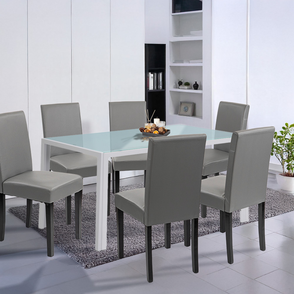 Te-ai săturat de mesele șovăielnice și de scaunele incomode și scârțâitoare care strică atmosfera meselor comune? În timpul cinelor în familie, al ocaziilor festive sau al întâlnirilor cu prietenii, toată lumea caută confort și stil - dar o masă instabilă sau suprafețe greu de curățat sunt doar o supărare. Mai ales dacă locuiești cu copii mici sau cu oaspeți frecvenți, aceasta poate fi o sursă constantă de stres. Setul de masă Leziter Mira 6 în 1, în alb și gri, rezolvă această problemă definitiv: un set elegant care oferă șase scaune confortabile și o masă de dining modernă și stabilă din sticlă — o alegere perfectă pentru acasă, birou sau catering.