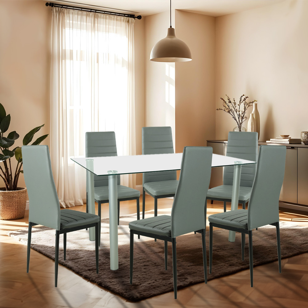Descriere Leziter Set masă Verna 6+1 gri-negru