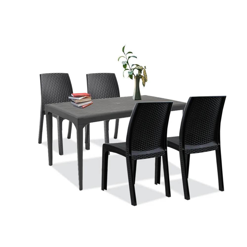 Setul de mobilier de grădină 4 în 1 Pauli se remarcă prin calitatea execuției și designul practic. Mobila este fabricată din materiale de înaltă calitate, rezistente la intemperii, astfel încât vă puteți bucura de ea mult timp. Materialele rezistente la intemperii și stabile la UV asigură că mobilierul rămâne frumos și nu se decolorează din cauza soarelui.