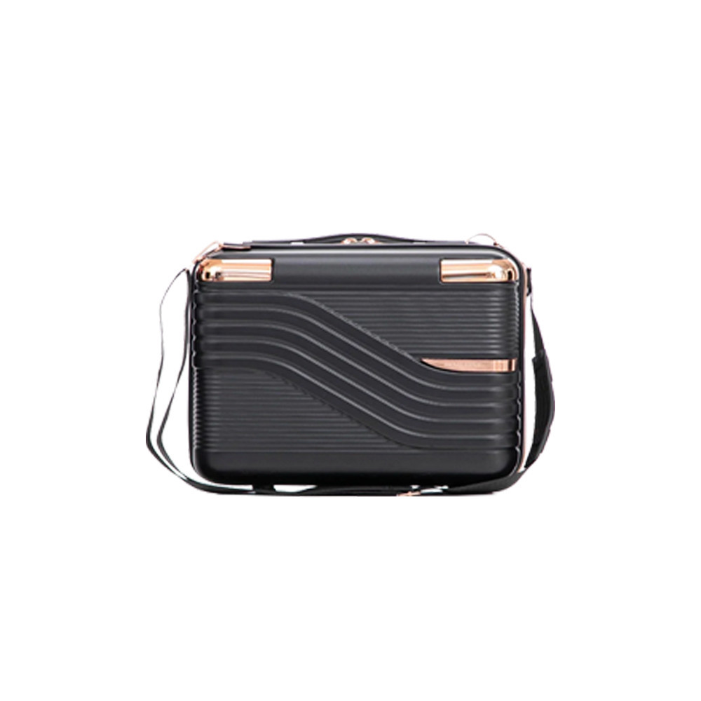 Designul modern nu este doar atractiv, ci și funcțional. Forma ondulată și cu nervuri sparge vizual suprafața, întărind în același timp structura. Combinația de culori negru și auriu-roz creează o senzație de lux - ca și cum ai purta un accesoriu premium, nu o piesă de machiaj. Această trusă de toaletă este destinată celor care caută o soluție nu doar practică, ci și frumoasă. Indiferent dacă ești într-o călătorie de afaceri, un weekend romantic sau o vacanță mai lungă - această geantă va merge cu tine.