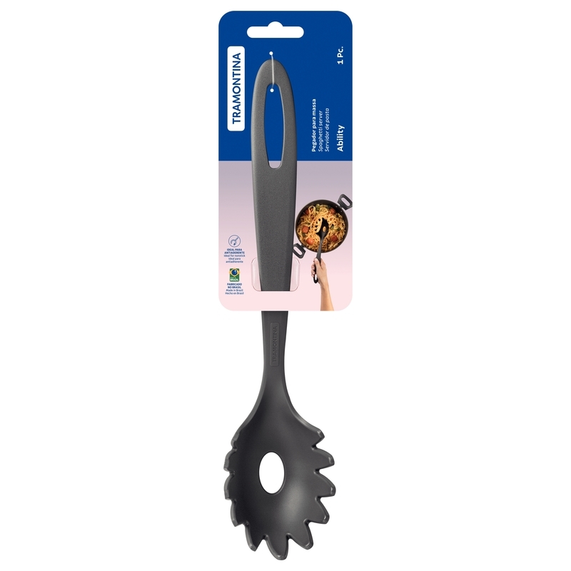 Lingura pentru spaghete gama ABILITY fabricata din nylon alimentar rezistent la la o temperatura de maxim 180ºC, culoare gri , se poate curata in masina de spalat vase, lungime totala 269mm
