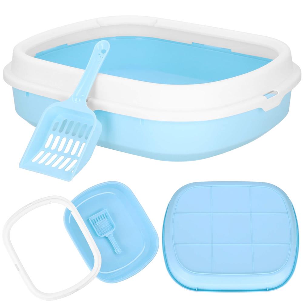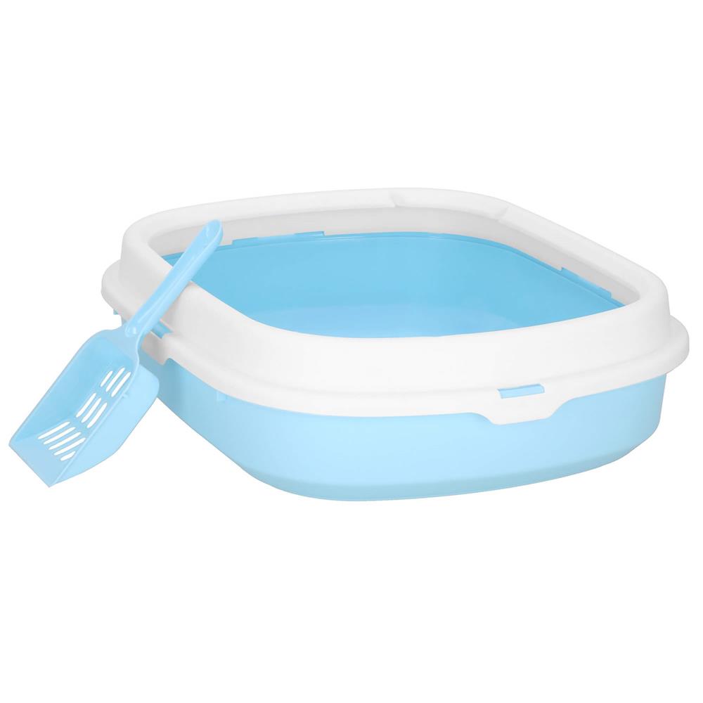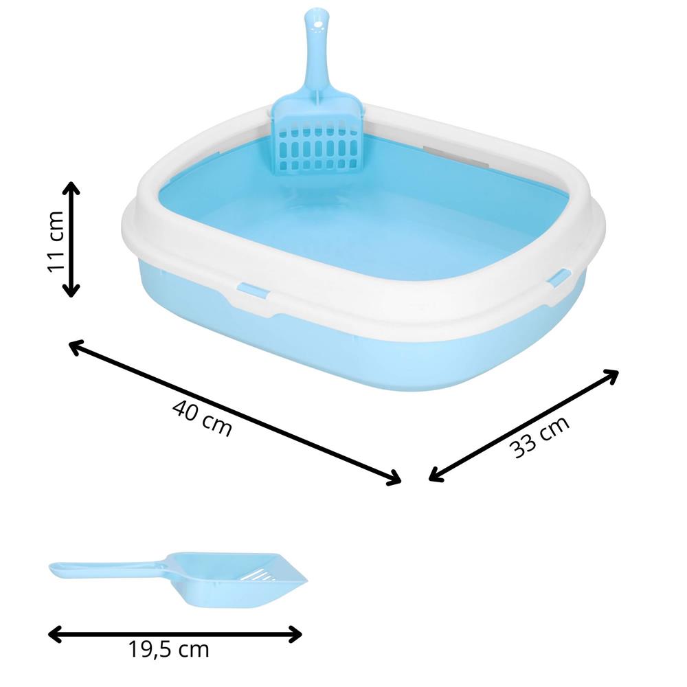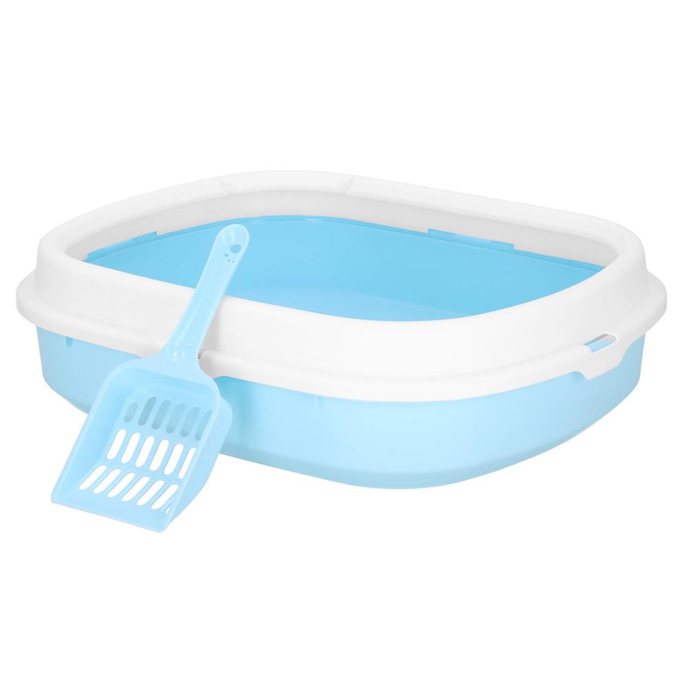 Litiera pentru pisici cu lopatica, 40x33x11 cm, albastru si alb Household NewTrend