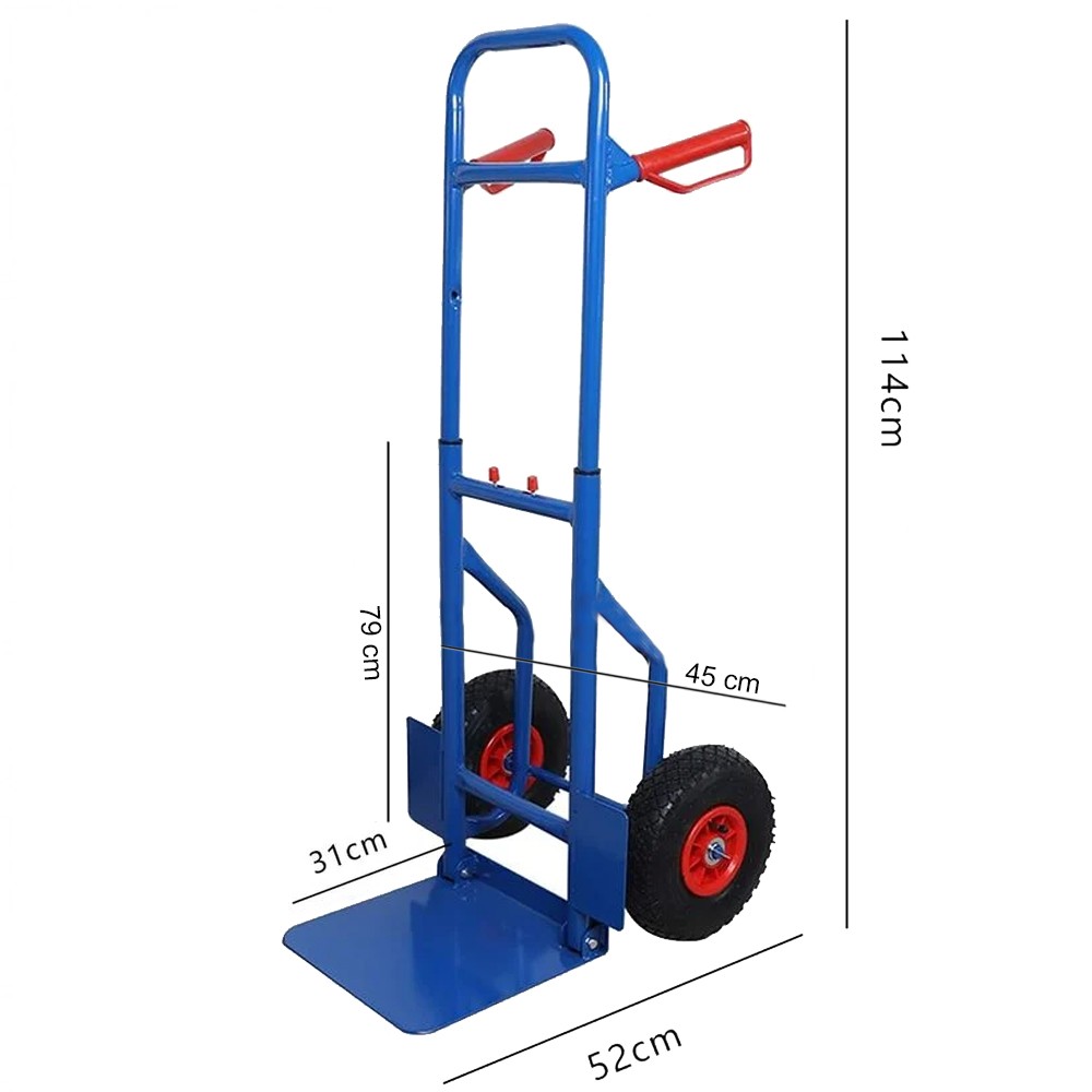 Manerele ergonomice din plastic cu aderenta ridicata asigura o prindere mai buna si previne ranirea. Cadrul este confectionat din otel acoperit cu pulbere pentru o mai buna durabilitate si rezistenta la coroziune, iar cele 2 roti sunt confectionate din cauciuc, fiind suficient de late si stabile pentru o rulare lina si fara zgomot.