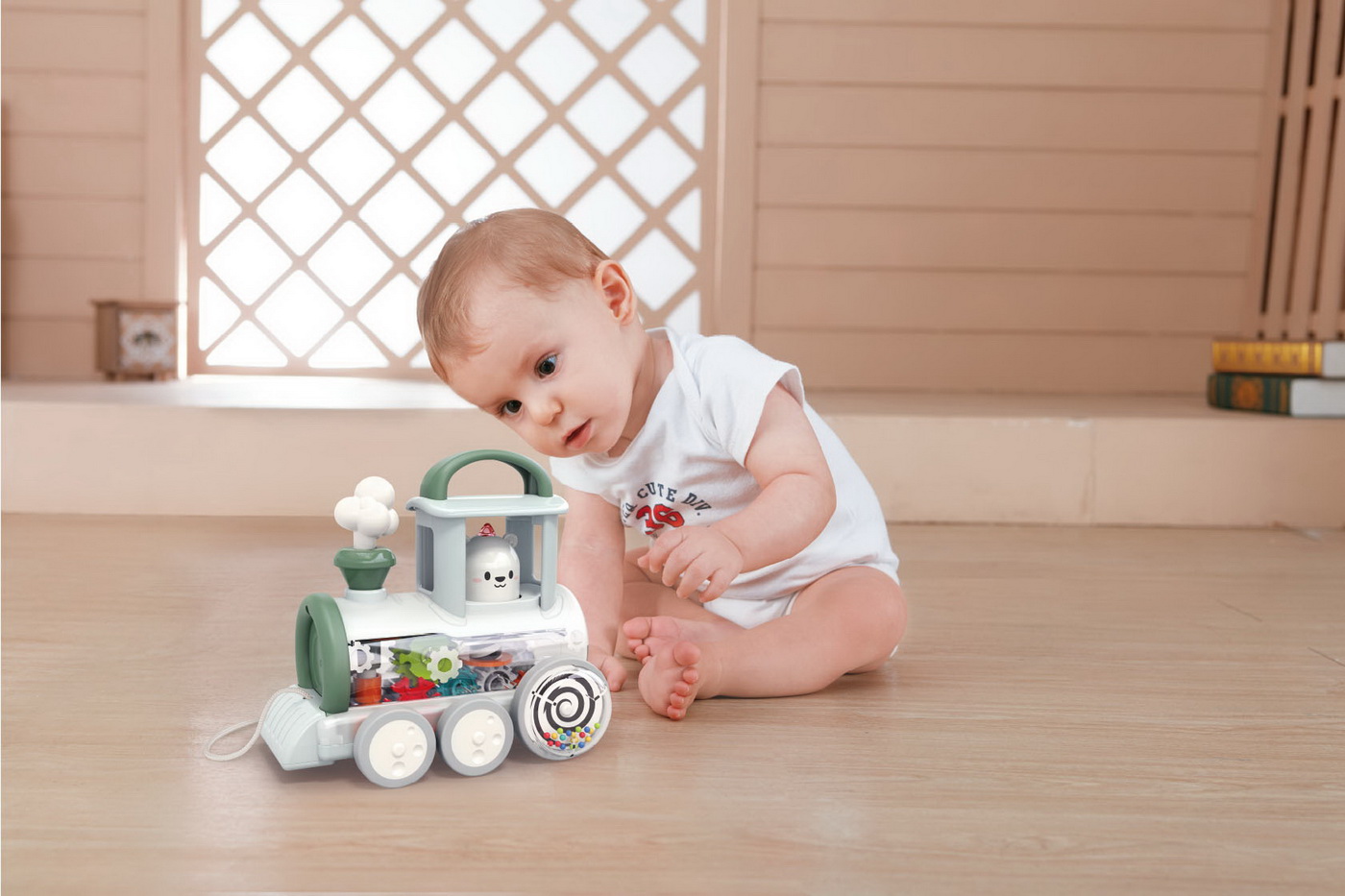 Prin împingere și observare, copilul își poate dezvolta coordonarea, atenția și motricitatea fină. Culorile vii și roțile cu mecanism vizibil transformă joaca într-o experiență captivantă, iar forma de tren îi încurajează pe cei mici să exploreze și să se miște mai mult.