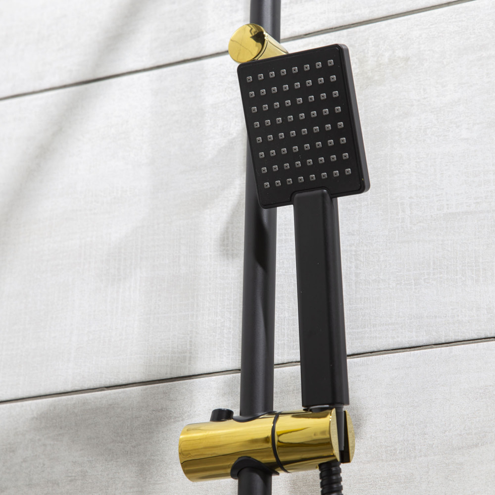 Setul de duș Denis 63 este un produs pe care l-am creat pentru a satisface așteptările clienților noștri. Are un design minunat care atrage mulți oameni. Produsul va satisface cu siguranță chiar și cei mai exigenți utilizatori. Combinația de negru și auriu este o nouă tendință în baie, care cu siguranță va fi dominantă pentru mult timp.