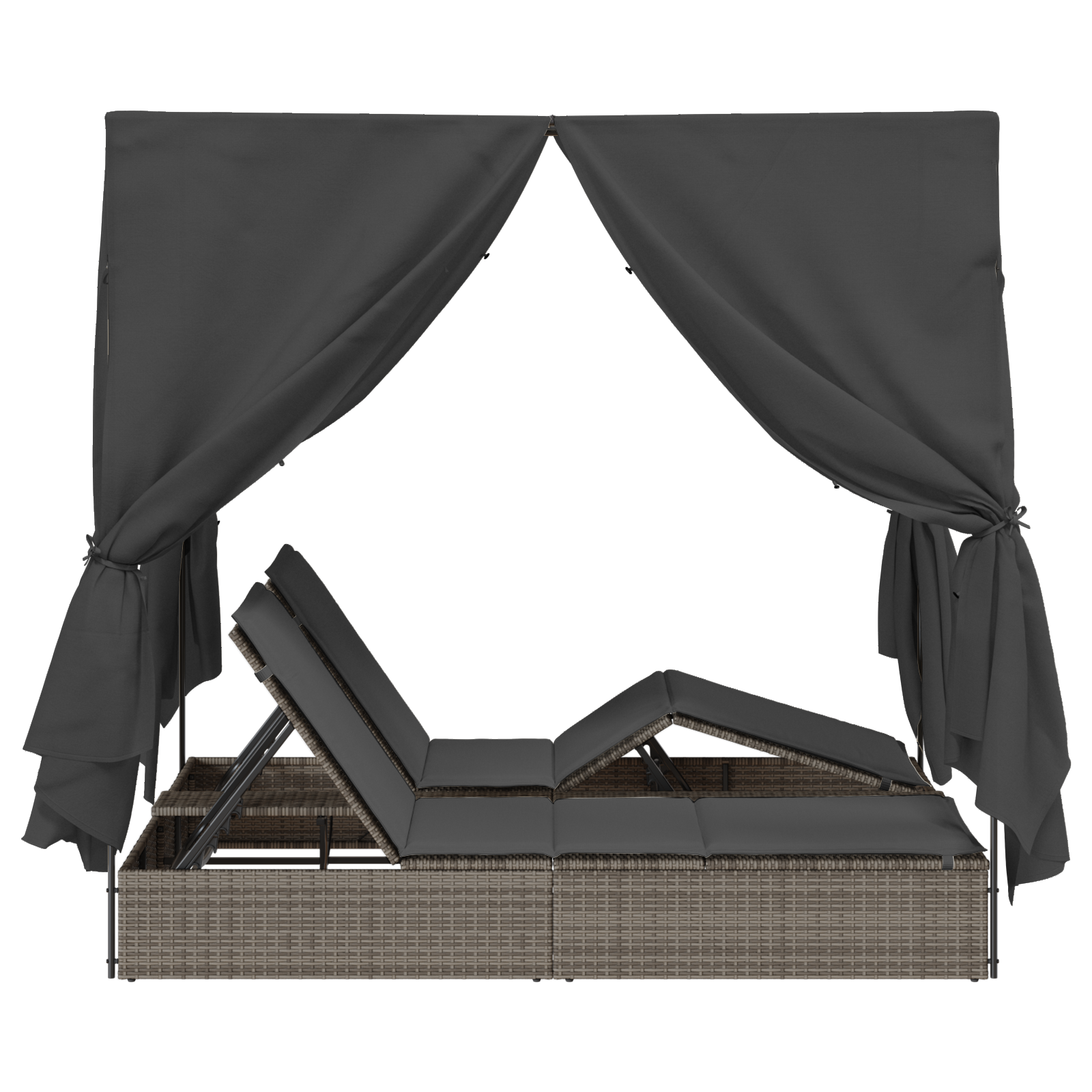 Lounger dublu cu acoperiș și perdele Gri din poliratan GartenMobel Dekor