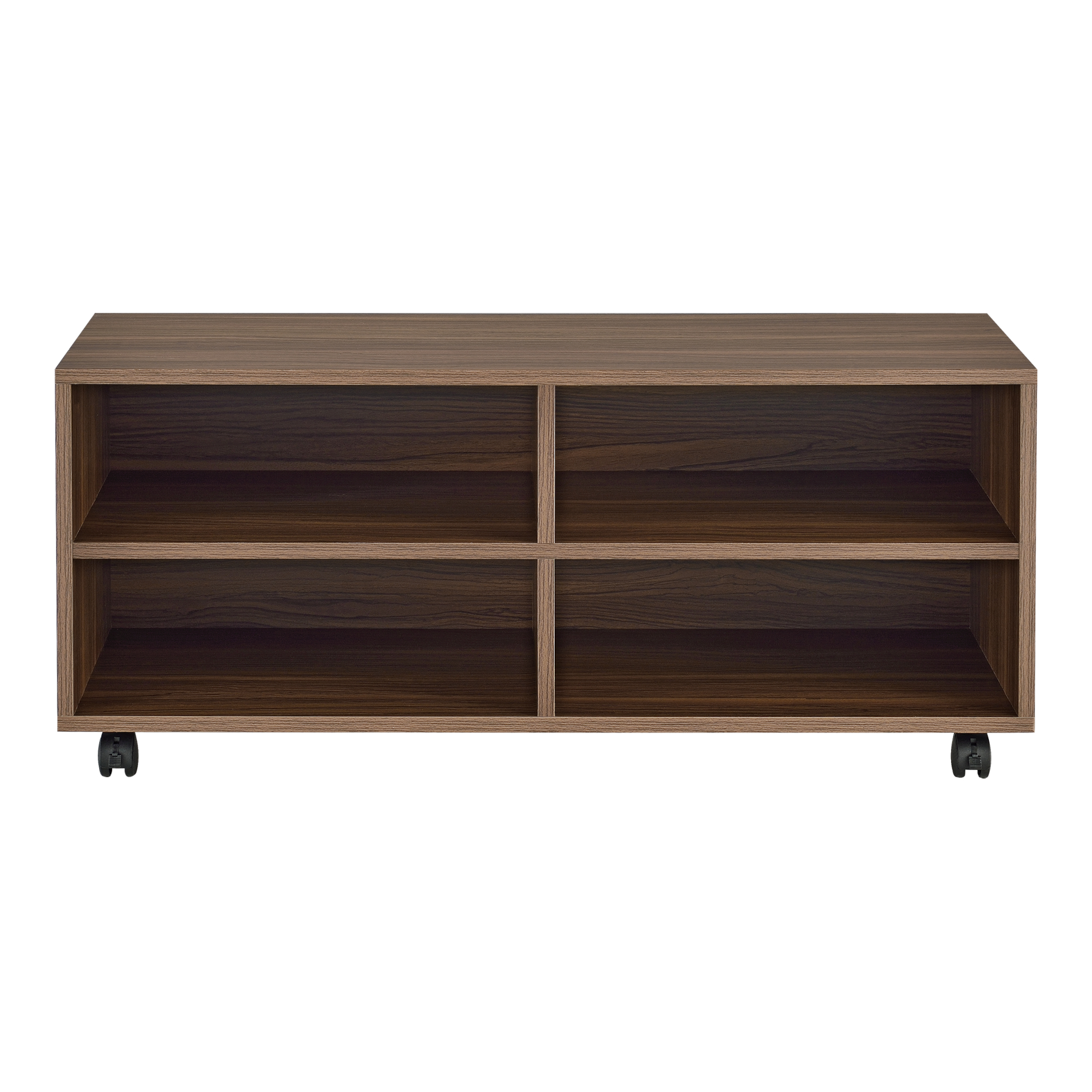 Dieses moderne und dekorative Lowboard verfügt über vier Ablagen und lässt sich durch die Rollen, schnell und einfach verschieben.