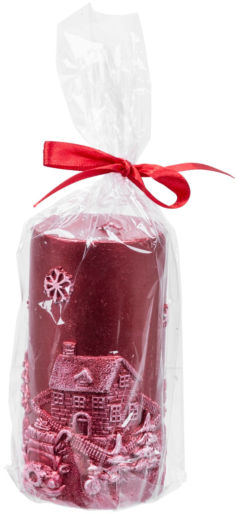 Adaugă un plus de farmec sărbătorilor cu această lumânare decorativă de Crăciun MagicHome, realizată în formă cilindrică și finisată într-o nuanță elegantă de roșu. Decorul reliefat cu peisaj 3D de iarnă oferă un aspect festiv aparte, fiind ideal pentru masa de sărbătoare, living, birou sau pentru a completa un aranjament sezonier.