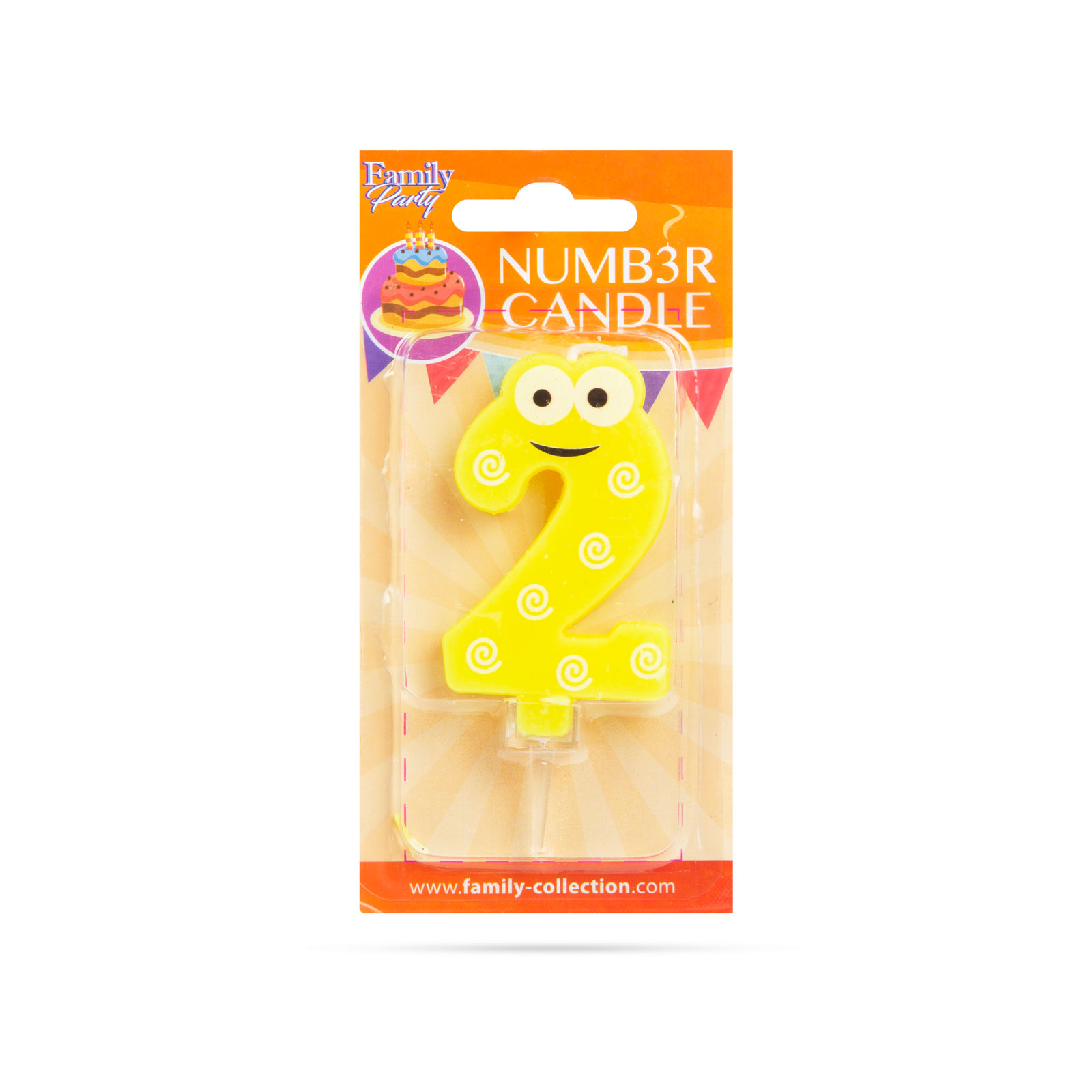 Lumânare pentru tort cifra 2 galbenă, decor aniversar vesel, 7 cm