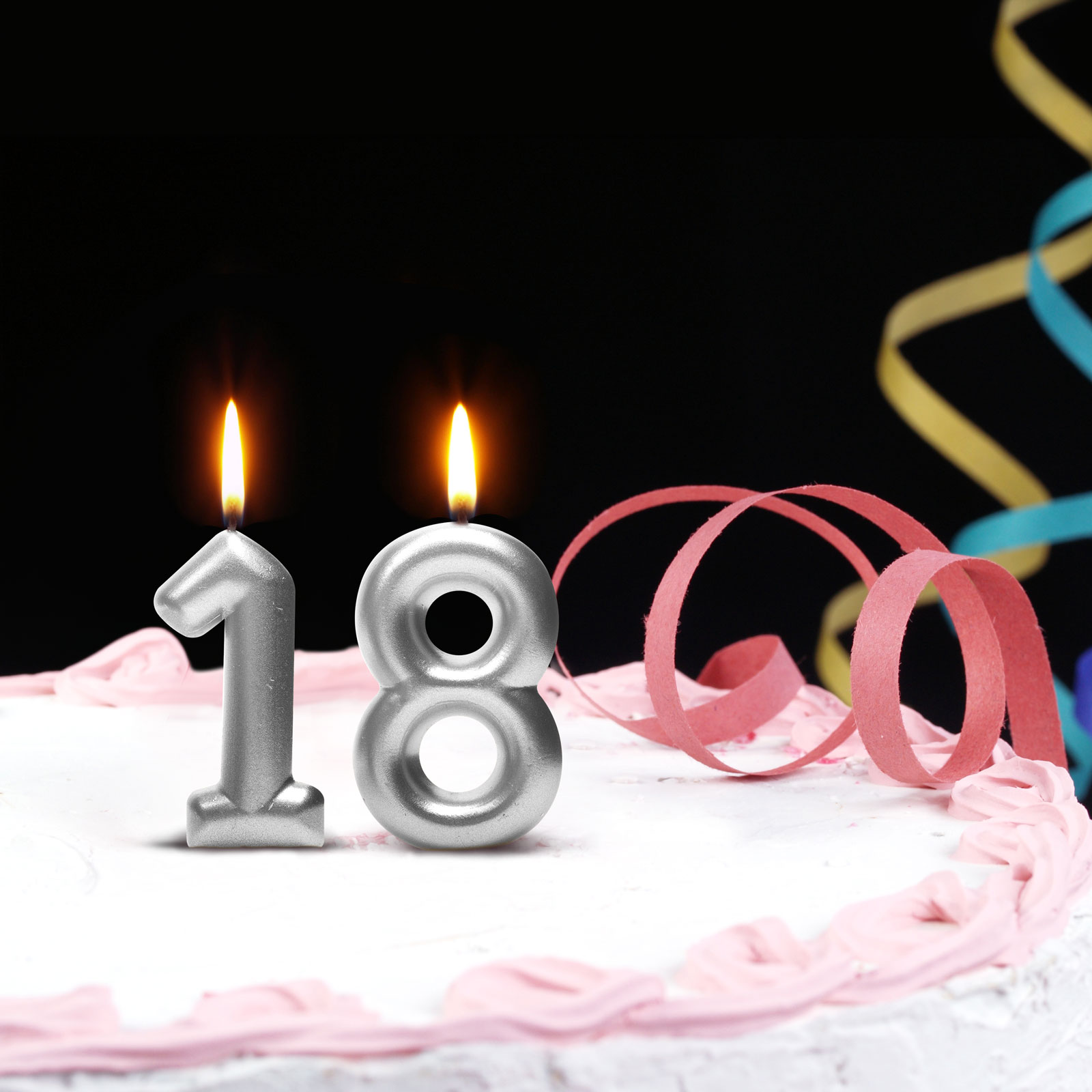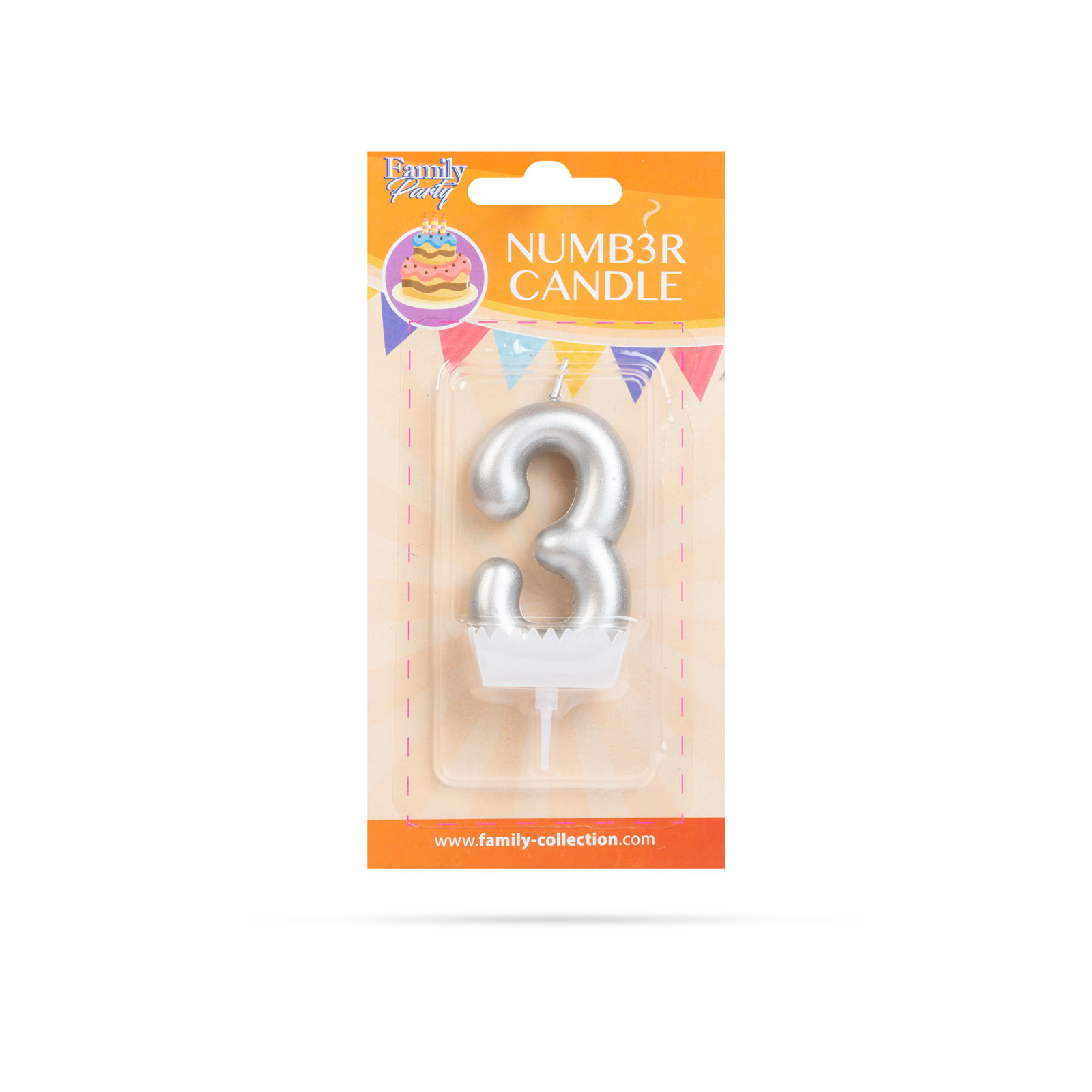 Lumânare pentru tort cifra 3 argintie, decor aniversare 6 x 3 cm