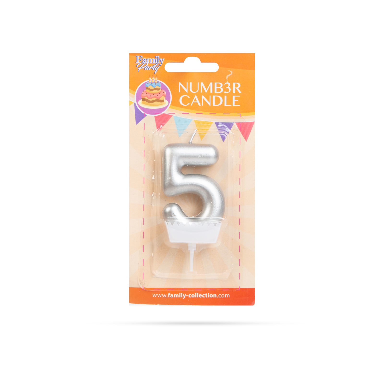 Lumânarea de tort argintie este ușor de așezat datorită suportului inclus și se potrivește perfect pe diverse tipuri de torturi, prăjituri sau deserturi festive. Designul în formă de cifră o face potrivită pentru aniversarea vârstei de 5 ani sau pentru combinații cu alte cifre.