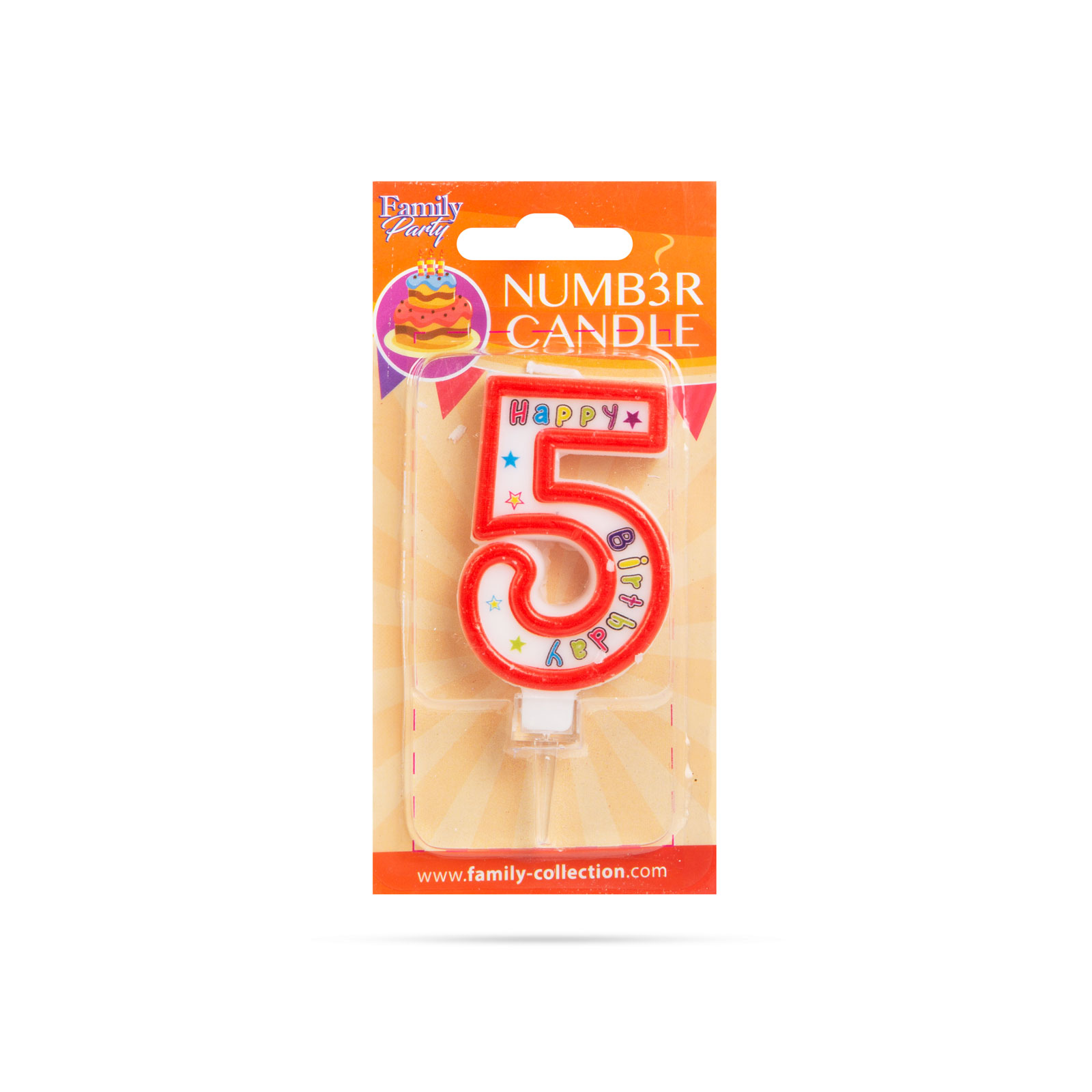 Lumânare pentru tort cifra 5, model aniversare Happy Birthday