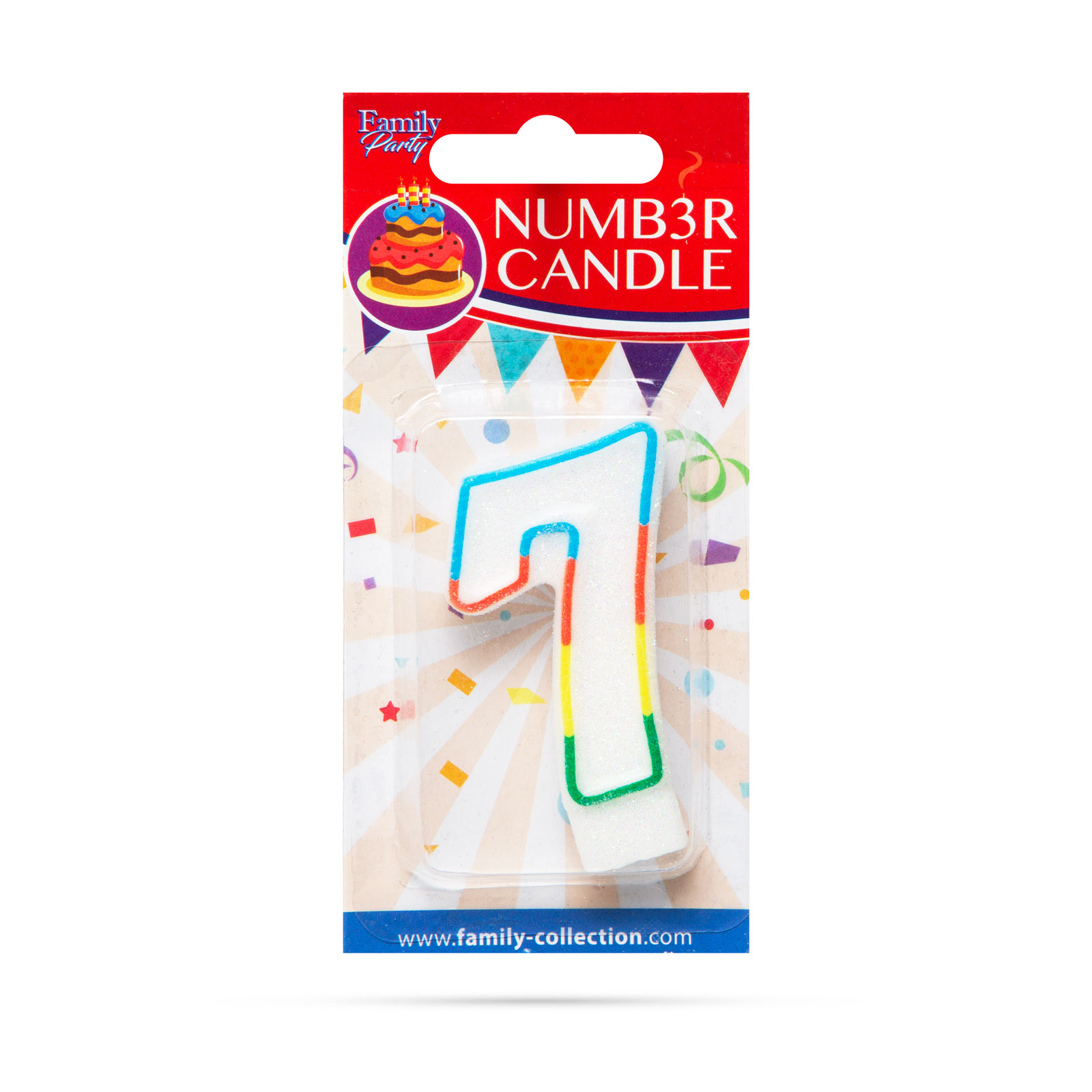 Lumânare pentru tort cifra 7, 7 cm, albă cu sclipici colorat