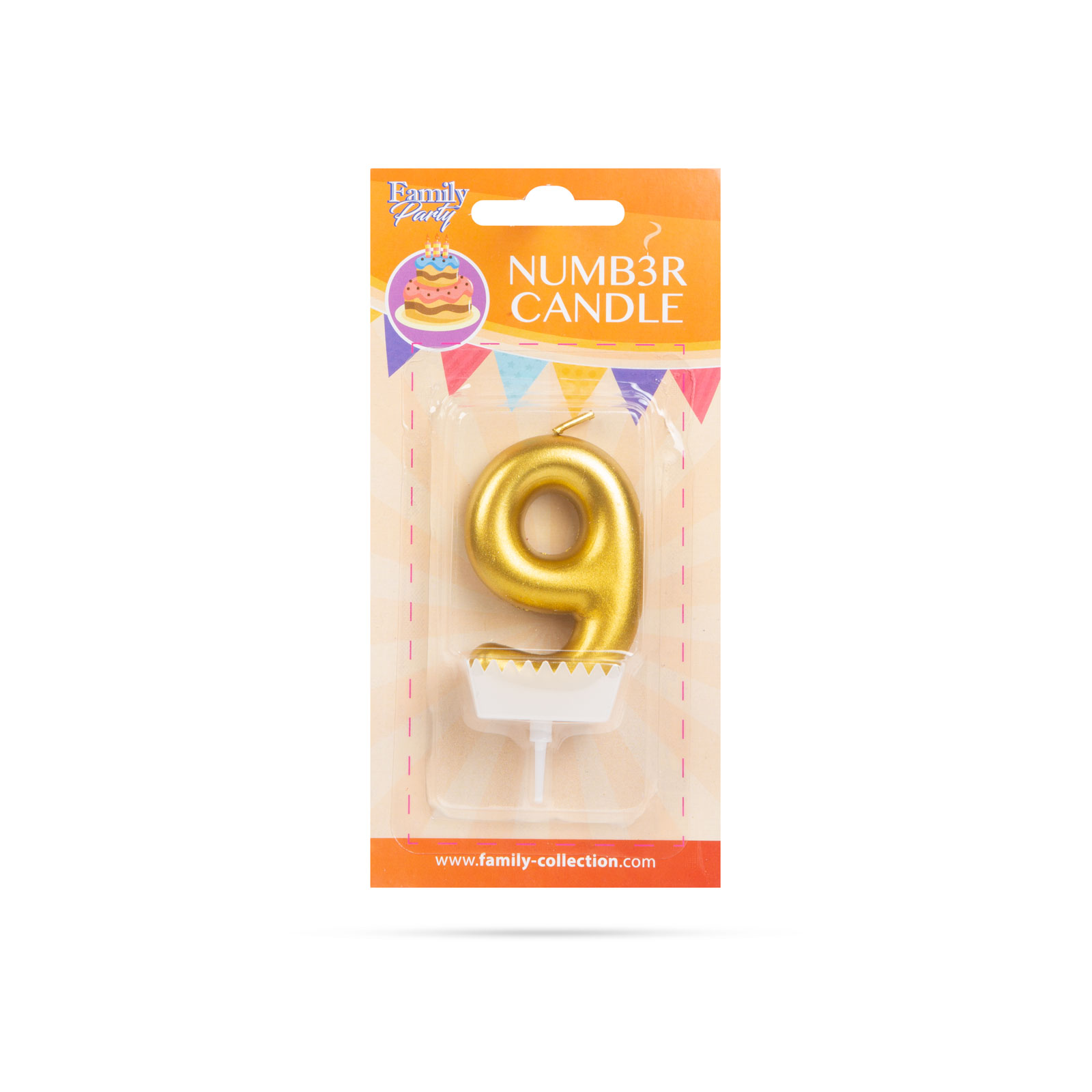 Lumânarea tort aurie are un design modern, este ușor de observat pe tort și se fixează rapid datorită suportului integrat. Poate fi folosită pentru aniversarea de 9 ani, dar și în combinație cu alte cifre pentru a forma diferite vârste sau date speciale.