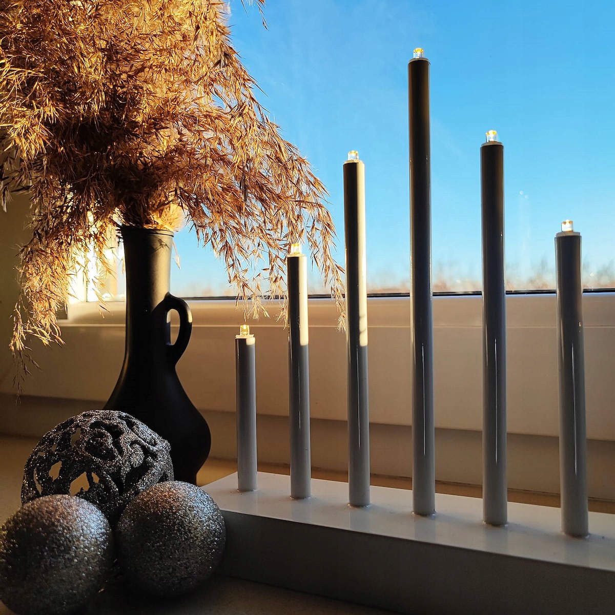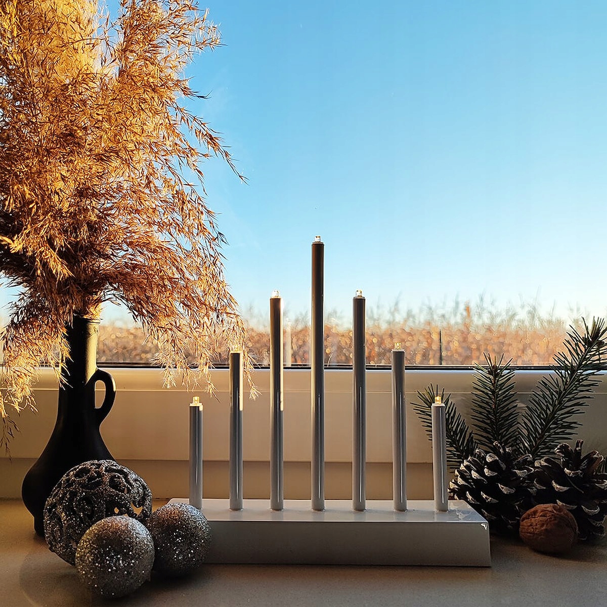 Adauga un plus de farmec sarbatorilor cu aceste lumanari decorative de Craciun cu 7 becuri tip LED, ideale pentru un decor festiv elegant si sigur. Designul modern, in nuanta argintie, se potriveste usor in orice incapere si creeaza o atmosfera calda, perfecta pentru masa de sarbatoare, semineu sau pervaz. Fiind o excelenta alternativa la lumanarile clasice, acest sfesnic decorativ LED este potrivit pentru familiile cu copii si pentru utilizare zilnica in sezonul rece.