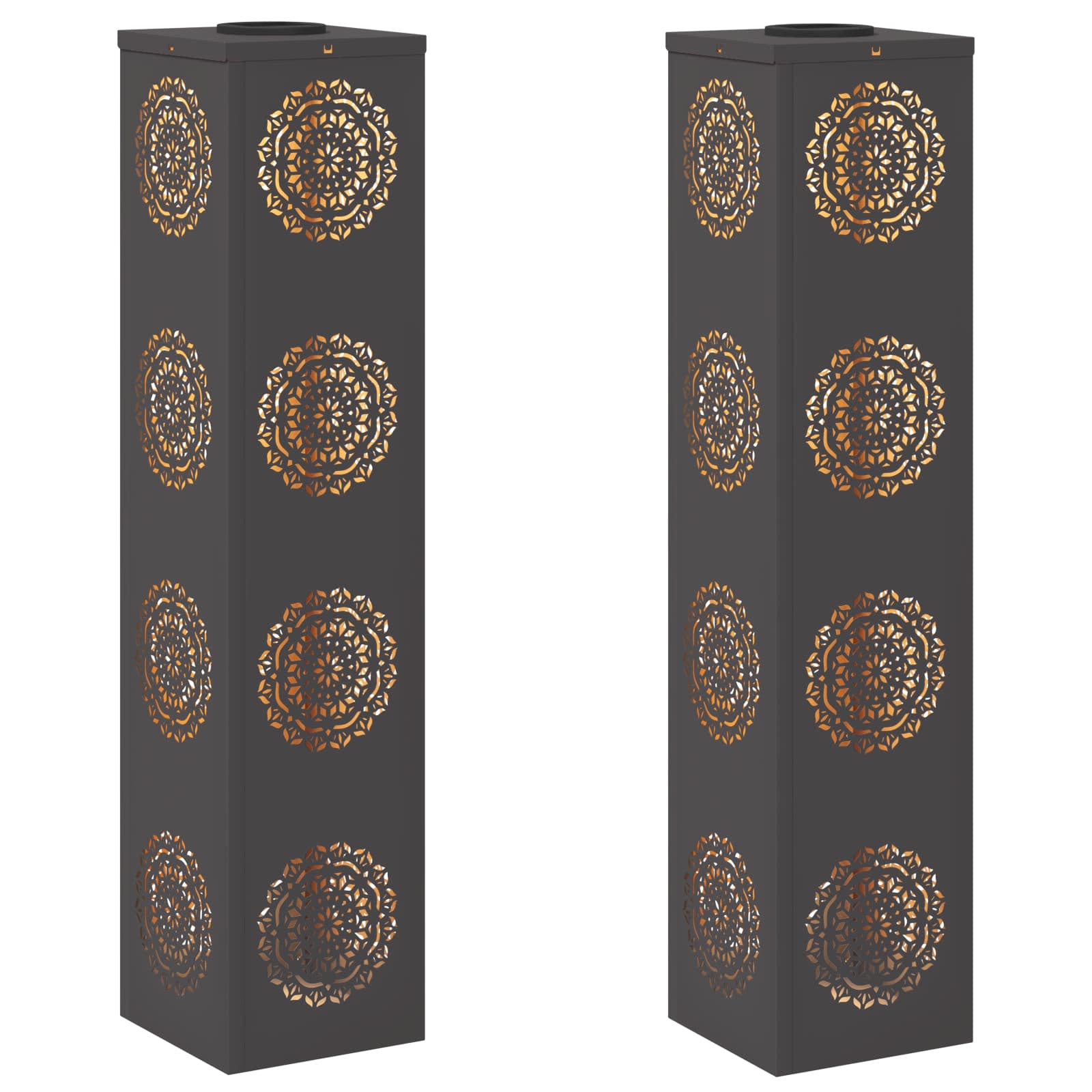 Lumină LED Solară pentru Alei 2 pcs Negru Oțel laminat la rece GartenMobel Dekor