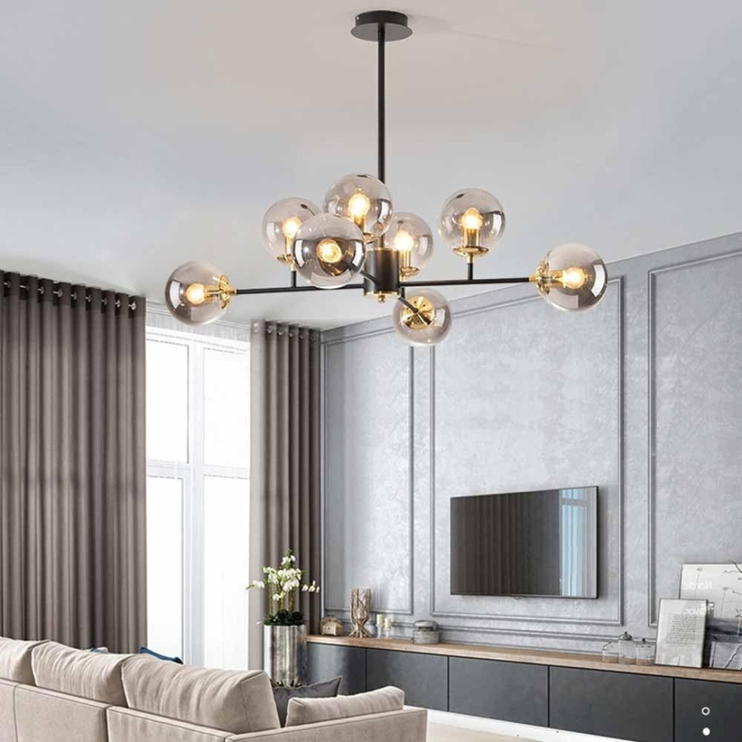Lustra Jermija cu abajur, echipata cu 8 socluri pentru becuri E27 si o combinatie eleganta de auriu si negru, este o piesa de iluminat cu un aer sofisticat si un impact vizual puternic. Designul cu 8 becuri sugereaza o capacitate de iluminare generoasa, potrivita pentru spatii de dimensiuni medii sau mari. Abajururile vor juca un rol important in directionarea si difuzarea luminii, creand o atmosfera specifica in functie de materialul si forma lor. Combinatia de auriu si negru adauga un contrast elegant: auriul aduce o nota de lux si caldura, in timp ce negrul confera profunzime si un aer modern. Acest joc de culori face ca lustra Jermija sa fie potrivita pentru interioare decorate in stil modern, industrial sau chiar clasic reinterpretat. Avand 8 surse de lumina E27, ai libertatea de a alege tipul de becuri (LED, incandescente, etc.) si temperatura de culoare dorita, pentru a personaliza iluminarea in functie de preferintele tale.