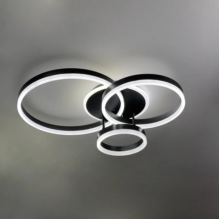 Lustră LED 94W cu telecomandă, 3 cercuri, lumină reglabilă, negru