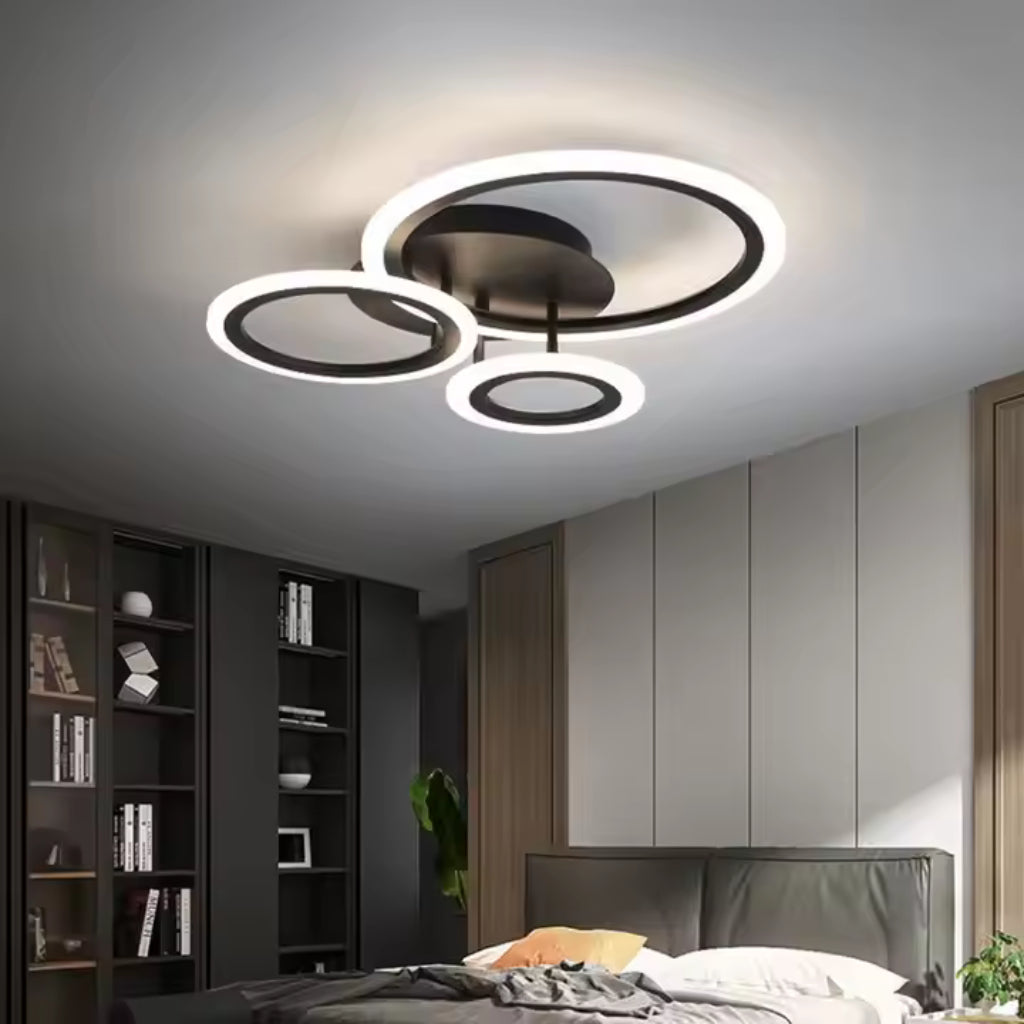 Transformă rapid atmosfera din casă cu lustra LED BETTY, un corp de iluminat modern cu 3 cercuri și finisaj negru mat. Este alegerea potrivită pentru living, dormitor, birou sau hol, oferind lumină plăcută și control total direct din telecomandă.