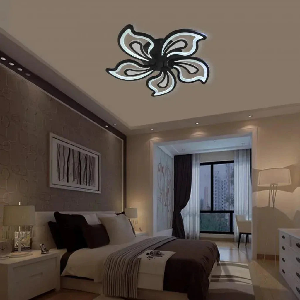 Lustra LED cu telecomanda GLORIOSA 150W, 5 Petale, lumina Rece/Calda/Neutra, Dimabila, Negru ModernLight Concept