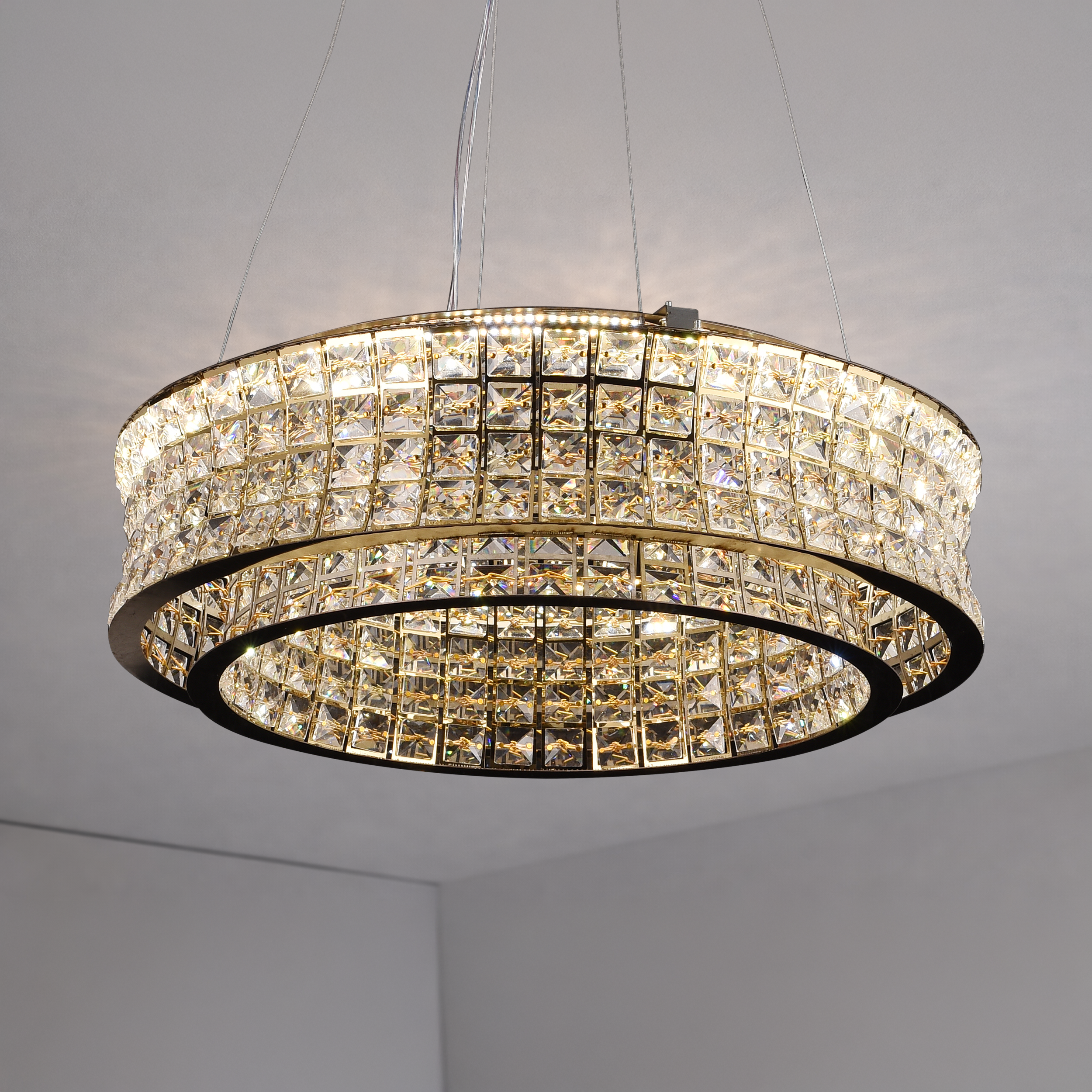 Lustra LED cu Telecomanda,LLC160/500GD, Cristal si Metal, 55W, Dimabila, Inaltime Reglabila, Lumina Rece/Calda/Neutra, Iluminat Luxos