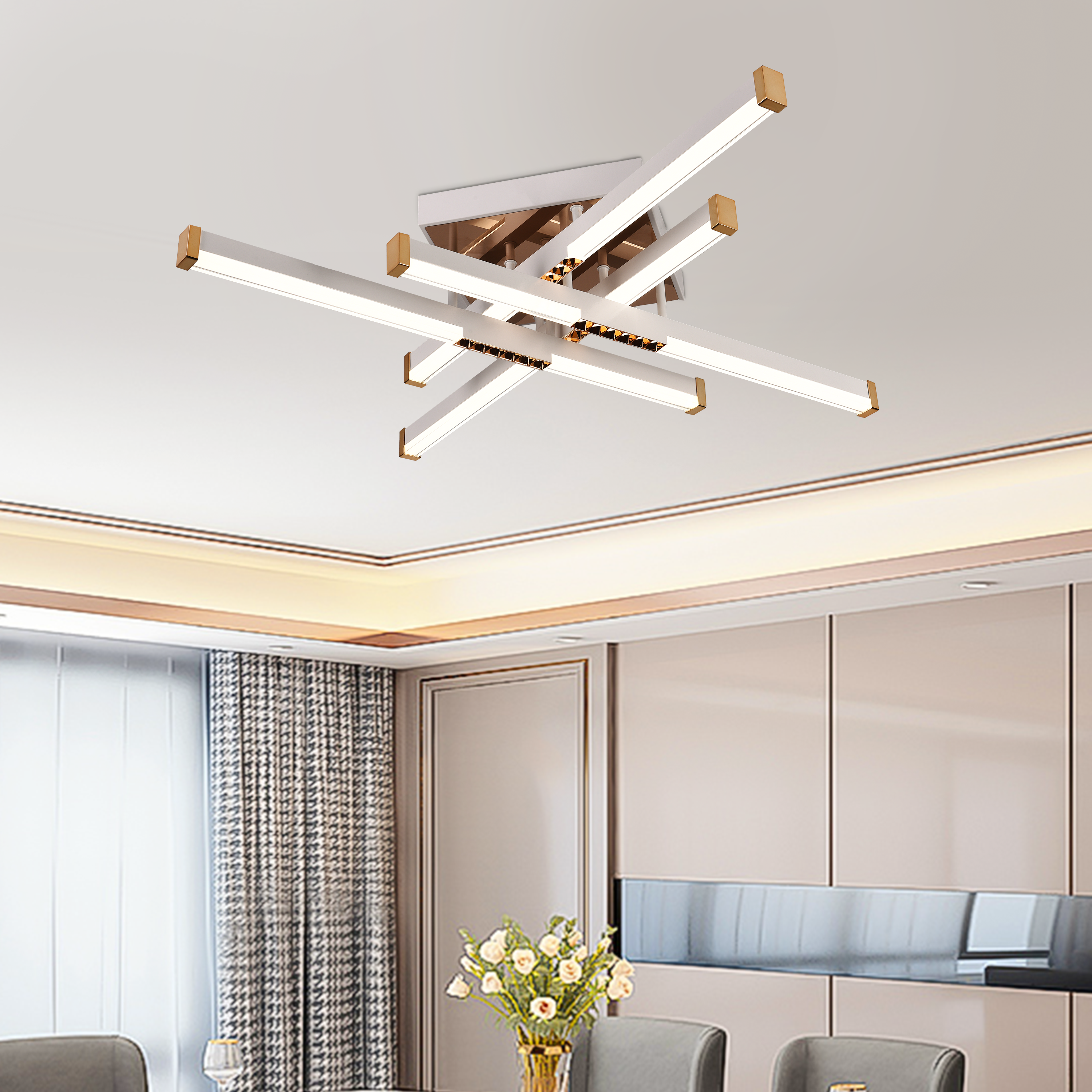 Lustra LED LT178/4WH impresioneaza prin designul modern si finisajul elegant alb, perfect pentru interioare luminoase si contemporane. Cu 4 elemente decorative si 54W LED integrat, ofera o iluminare puternica si uniforma. Prin telecomanda inclusa, poti regla atat intensitatea, cat si temperatura luminii: 3000K (calda), 4000K (neutra), 6000K (rece). ✔ Putere: 54W LED integrat ✔ Temperatura culoare: 3000K / 4000K / 6000K ✔ Functii: Dimabila, reglaj complet prin telecomanda ✔ Design: 4 elemente elegante, finisaj alb modern ✔ Material: Metal + Acril ✔ Utilizare: Living, dining, dormitor, birou, spatii moderne Aceasta lustra LED combina tehnologia inteligenta cu un design minimalist, fiind alegerea ideala pentru un interior modern si rafinat.