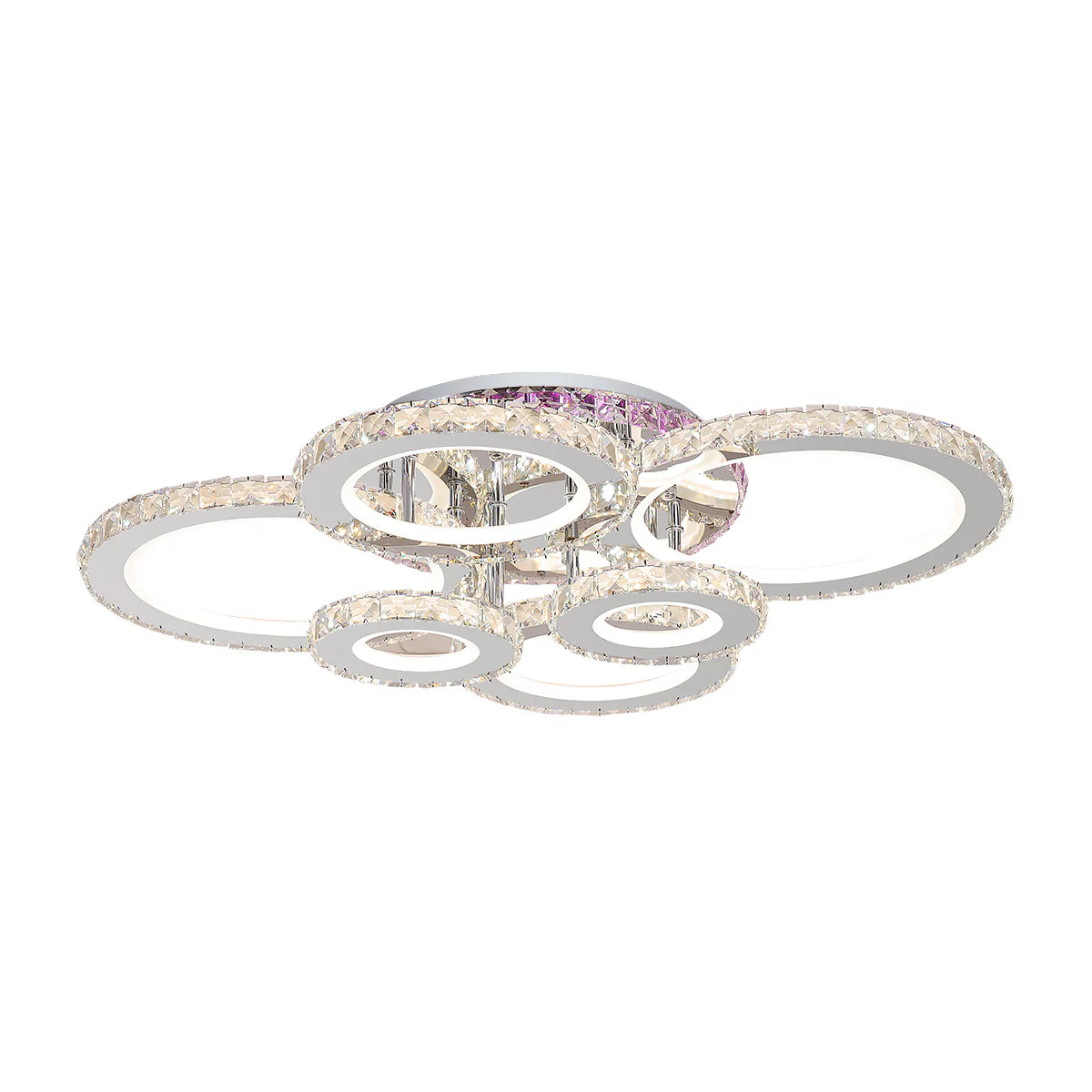 Lustra LED cu telecomanda si cristal NOVA ROTONDA RGB 152W, 6 Cercuri, lumina Rece/Calda/Neutra, Dimabila, Crom Lucios ModernLight Concept